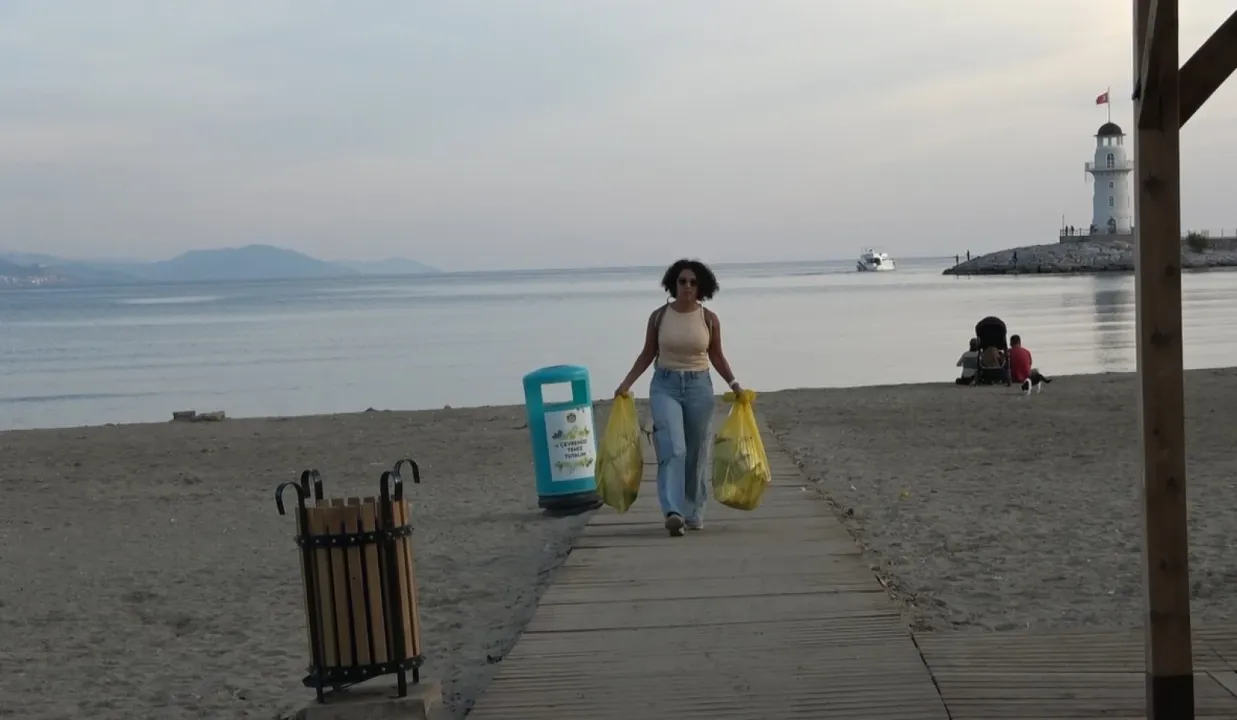 Alanya ilçesinde 17 yıldır Türkçe öğretmeni olarak görev yapan 42 yaşındaki Çiğdem Kuzucu, öğretmenlik görevine başladığı günden itibaren doğaya ve çevreye sahip çıkarak başlattığı çevre temizliği farkındalığı, sosyal medya hesabından paylaştığı videolar ile büyük ilgi görüyor. Yaptığı bu örnek davranış yalnızca kendisiyle sınırlı kalmayarak, öğretmenlerinin duyarlılığından etkilenen öğrenciler, boş zamanlarında Kuzucu’ya eşlik ederek sahilde çöp topluyor. Öğrencilerinin büyük bir istekle katıldığı etkinlikler, hem çevre bilinci kazandırıyor hem de Alanya’nın sahillerini daha temiz hale getiriyor. Sahilde insanların geriye bıraktığı çöpleri üşenmeden yanında getirdiği çöp torbasına biriktiren Kuzucu, çöpleri çöp kutusuna attıktan sonra evin yolunu tutuyor.