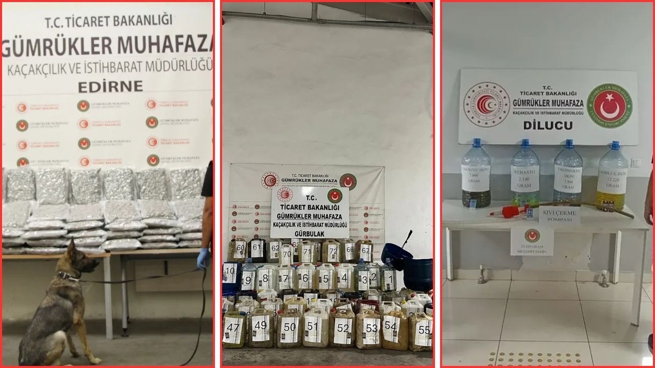 Ağrı Gürbulak Gümrük Kapısı'nda 1167 kilogram sıvı metamfetamin, Edirne Kapıkule Gümrük Kapısı'nda 114 kilogram esrar, Iğdır Dilucu Gümrük Kapısı'nda 23 kilogram metamfetamin olmak üzere toplam 4 milyar 385 milyon Türk lirası değerinde yaklaşık 1,3 ton uyuşturucu madde ele geçirildi. Operasyonlarla ilgili Doğubayazıt, Edirne ve Aralık Cumhuriyet Başsavcılıkları nezdinde soruşturma başlatıldı.