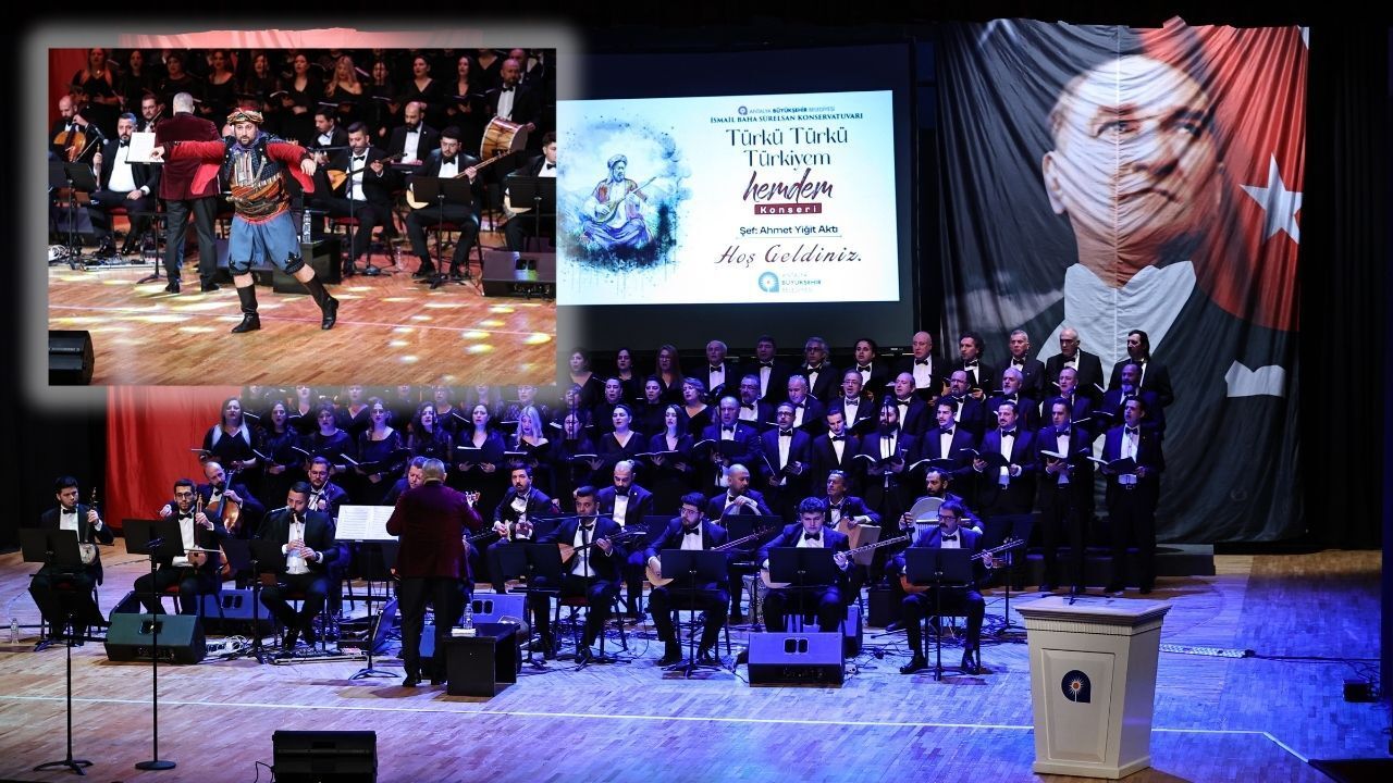 Antalya Büyükşehir Belediyesi İsmail Baha Sürelsan Konservatuvarı Türk Halk Müziği (THM) İcrâ Heyeti tarafından hazırlanan “Türkü Türkü Türkiyem Hemdem” konseri, Anadolu’nun zengin türkü mirasını Antalyalı türkü severlerle buluşturdu. Şef Ahmet Yiğit Aktı yönetiminde sahneye taşınan konser, izleyicilere duygu dolu anlar yaşattı.