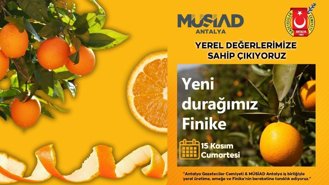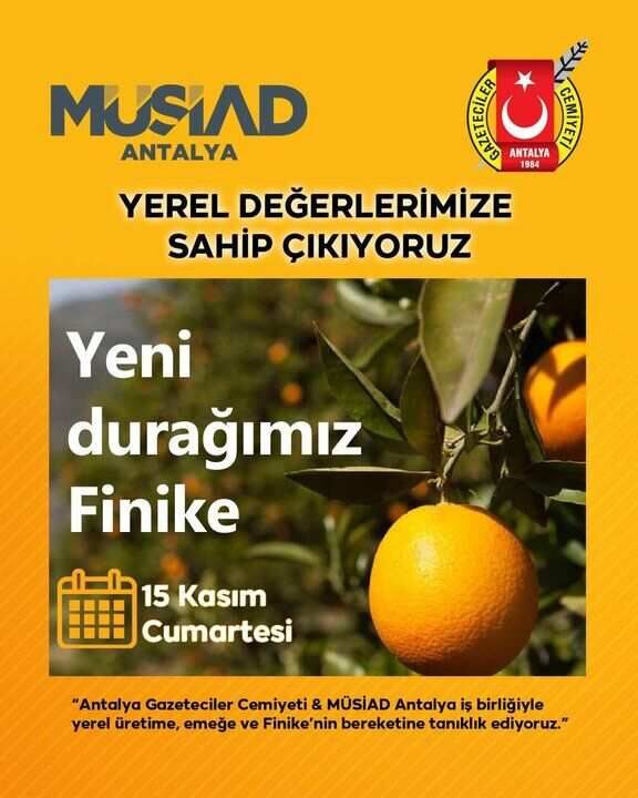 AGC’nin MÜSİAD Antalya Şubesi iş birliğiyle düzenleyeceği gezi, 15 Kasım Cumartesi günü gerçekleştirilecek. Basın mensupları Finike’nin portakal üretimindeki öncü rolünü yerinde inceleyecek.