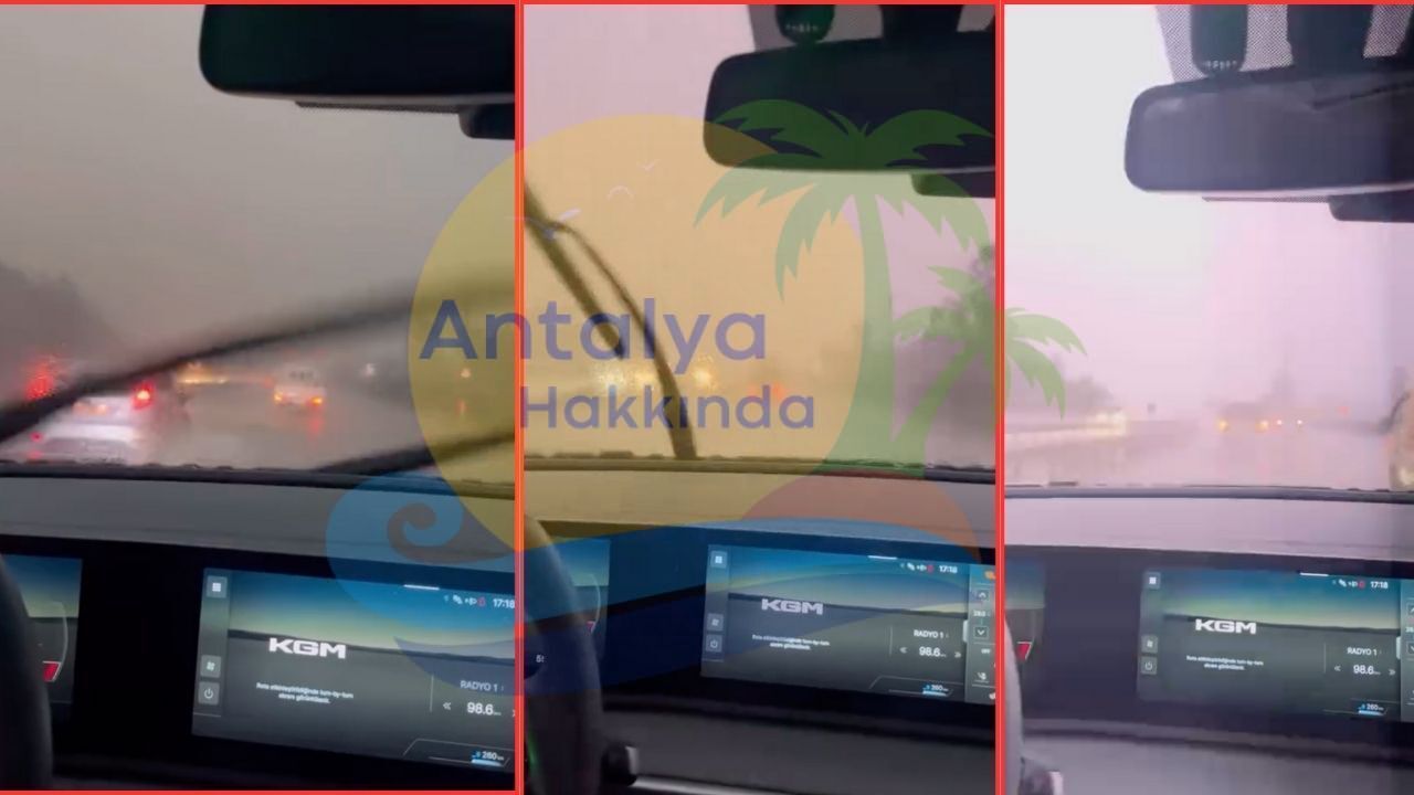 Antalya- Manavgat yolunda bugün meydana gelen yoğun yağış, trafikte ilerleyen sürücülere zor anlar yaşattı. Yağışın etkisini artırmasıyla birlikte görüş mesafesinde ciddi düşüş yaşandı. Bir sürücü, araç içerisinde seyir halindeyken önünü görmekte zorlandığı anları cep telefonu kamerasıyla kayda aldı.