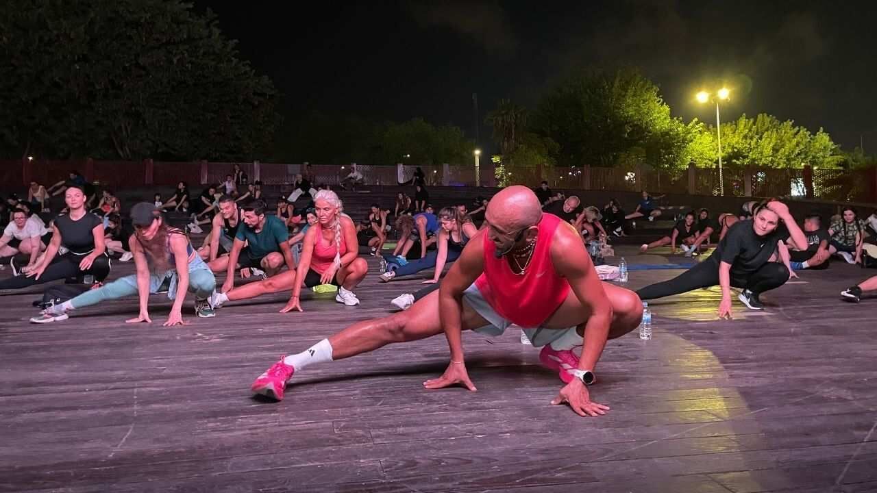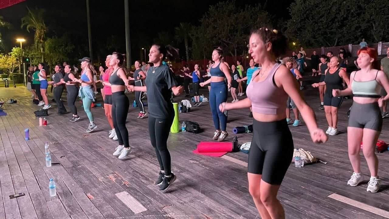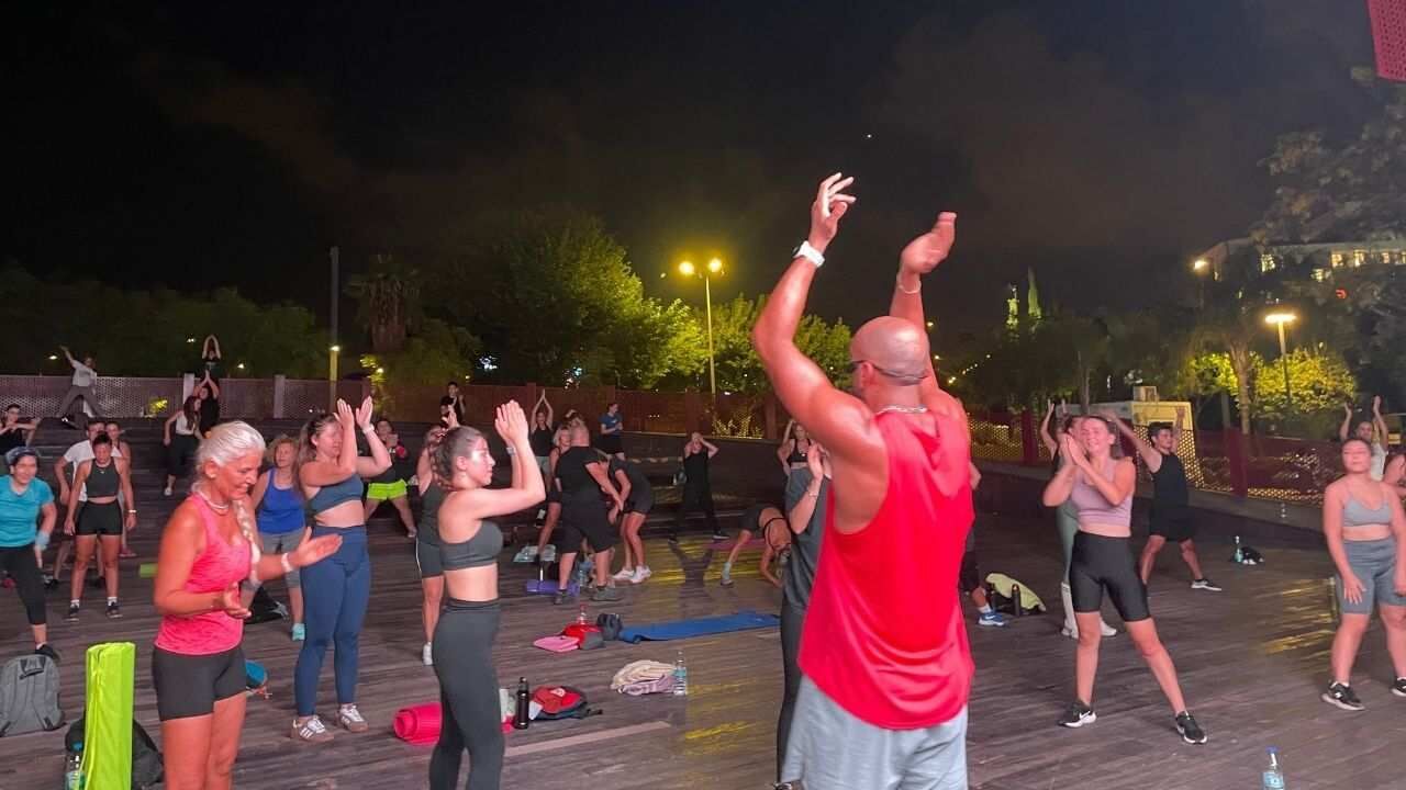 “Şöyle pazartesi ve perşembe günü egzersizleri yaptıracağım. Saat 20.30’da burada buluşuyoruz. O bir kent meydanı diye geçiyor burası. Her hafta burada buluşuyoruz. Haftanın iki günü burada buluşuyoruz. Ve egzersizi yapıyoruz. Herkesin buraya katılıp gerçekten hem eğlenerek hem severek spor yapabileceği bir ortam. O yüzden Antalya’nın her yerinden gelebilirler. Biz herkesi bekliyoruz. Bizimle birlikte bu enerjiyi paylaşmak isterlerse herkesi burada görmek isteriz”