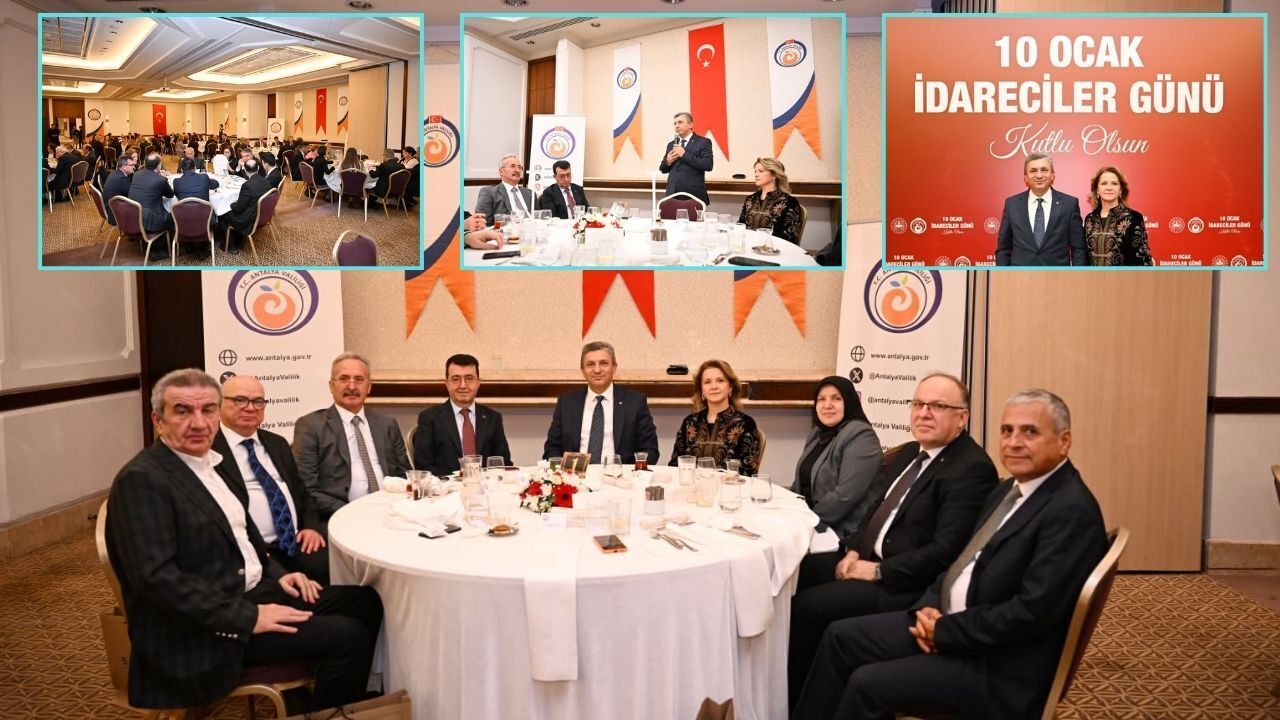 Antalya Valisi Hulusi Şahin ve eşi Ebru Şahin, 10 Ocak İdareciler Günü dolayısıyla düzenlenen programda, mülki idare amirleriyle bir araya geldi. Muratpaşa ilçesinde gerçekleştirilen programa Vali Hulusi Şahin ve eşi Ebru Şahin, Vali yardımcıları, kaymakamlar, emekli mülki idare amirleri ve aileleri katıldı.