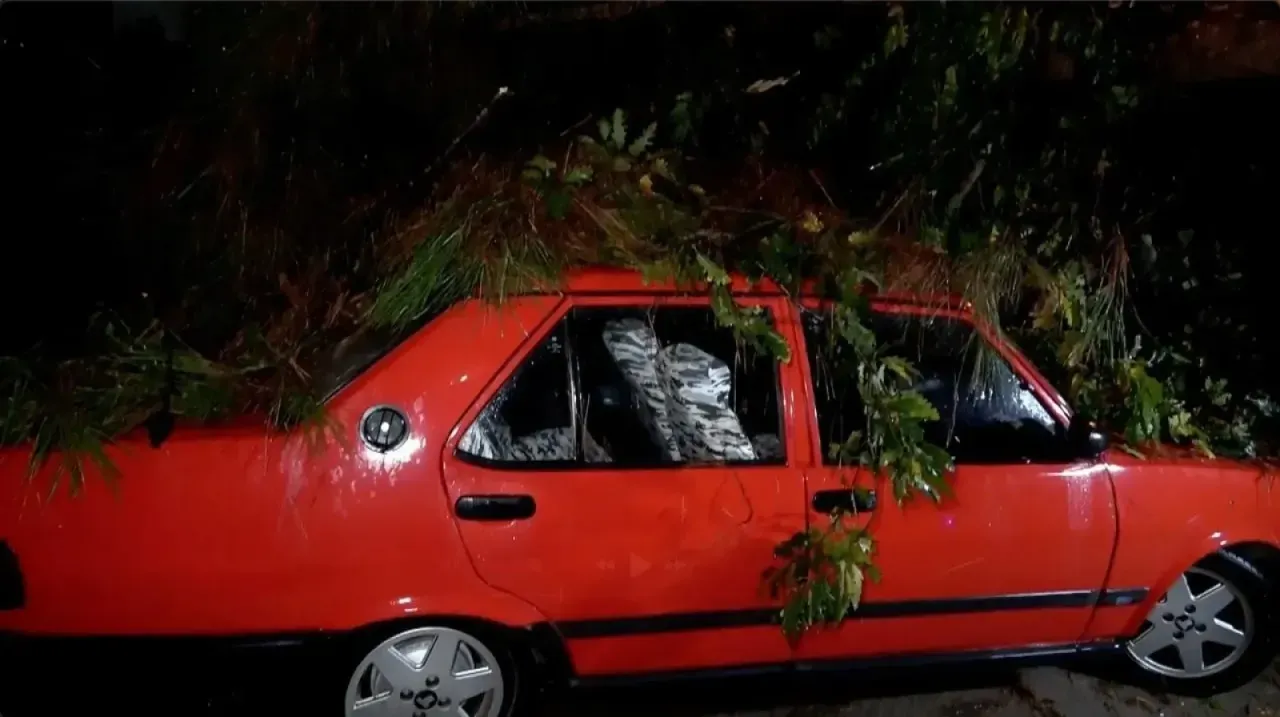 Antalya’nın Konyaaltı ilçesi akşam saatlerinde etkisini artıran yağış, Gürsu Mahallesi’nde 10 metre uzunluğundaki bir ağacın devrilmesine neden oldu. Olay saat 22.30 sıralarında yaşandı. Yolun ortasına düşen ağaç park halindeki iki aracın üzerine devrilerek hasara yol açtı. İhbar üzerine olay yerine Antalya Büyükşehir Belediyesi itfaiye ekipleri sevk edilirken ağacın devrilmesiyle birlikte binanın da camları kırıldı ve balkonu zarar gördü.