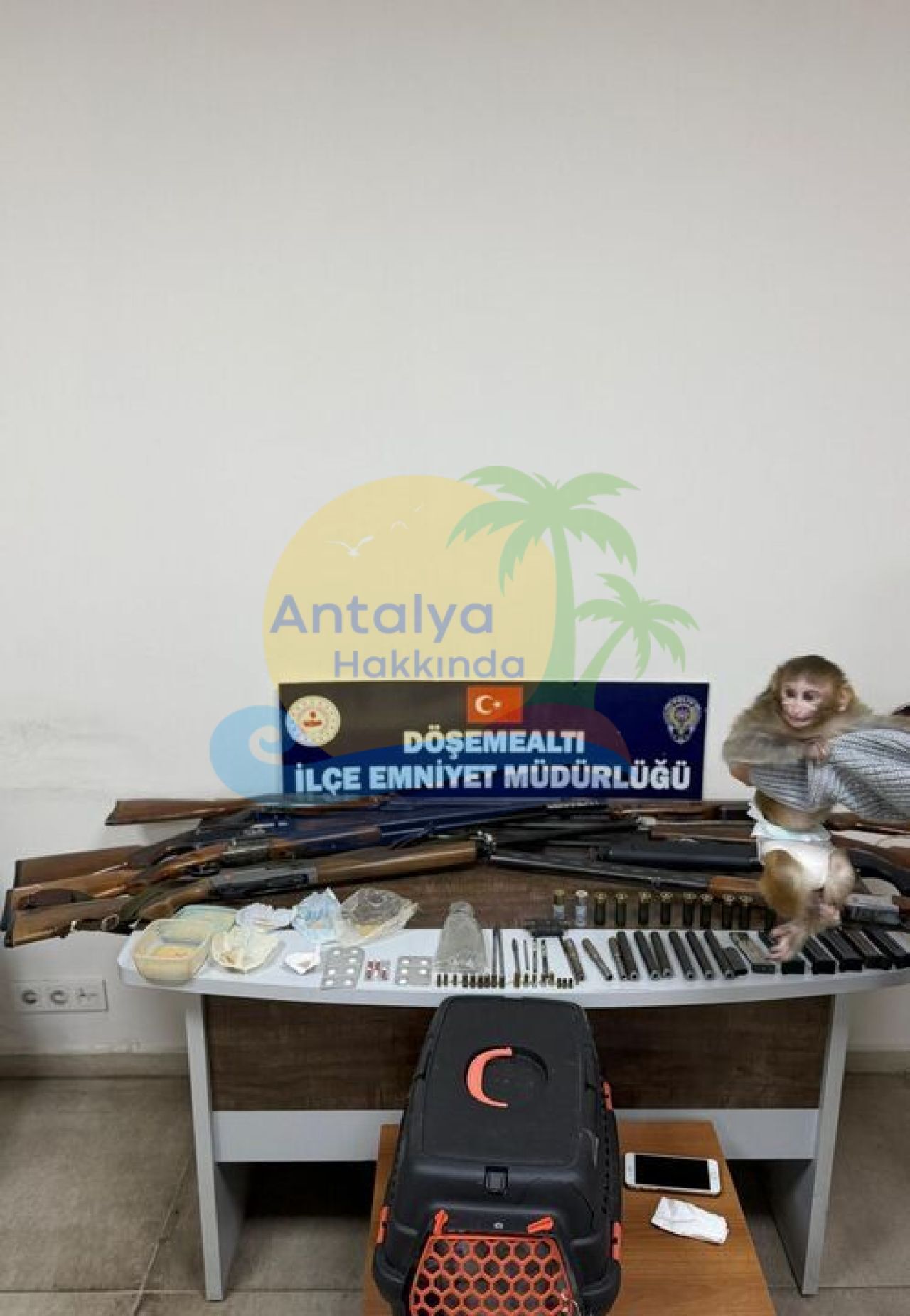 Operasyonlarda; 1 adet makak cinsi maymun, 50 gram eroin, 17 adet sentetik ecza, 7 adet ruhsatsız av tüfeği, 1 adet havalı tüfek, 9 adet namlu, 7 adet şarjör, 7 adet yiv-set yapımında kullanılan kılavuz aparat, 14 adet fişek, 11 adet dolu uzun namlulu kartuşu ve 3 adet boş kovan ele geçirildi.