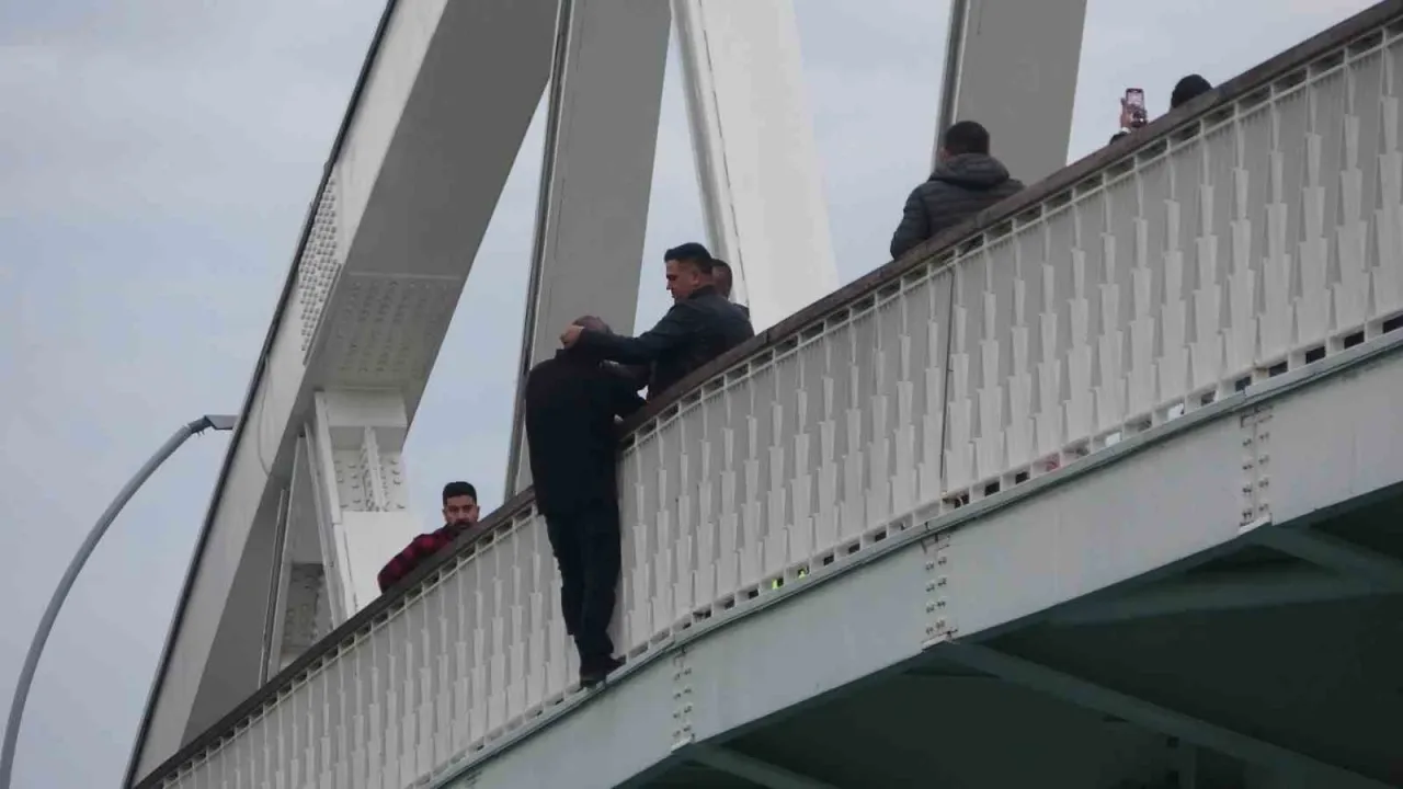 Manavgat ilçesi Örnek Mahallesi Şükrü Sözen Köprüsü’nde korkuluk demirlerinin dışında bir şahsın elinde bıçakla intihar girişiminde bulunduğu ihbarı Antalya Büyükşehir Belediyesi İtfaiyesi, 112 sağlık ve Manavgat Emniyet Müdürlüğü ekiplerini harekete geçirdi. Ekipler kısa sürede olay yerine gelirken, meraklı vatandaşlar köprü çevresinde büyük bir kalabalık oluşturdu. Boynunda ip, elinde bıçak bulunan ve hayatına son vereceğini söyleyen Osman B. isimli şahıs Manavgat Emniyet Müdürlüğü Asayiş Büro Amiri Sinan Karaman’ın çabaları sonucunda eyleminden vazgeçerek alkışlar arasında bulunduğu yerden güvenli bölgeye alındı. İsminin Osman B. (55) olduğu öğrenilen 3 çocuk babası şahıs, polis aracına alınarak kontrol amaçlı Manavgat Devlet Hastanesi’ne götürüldü.