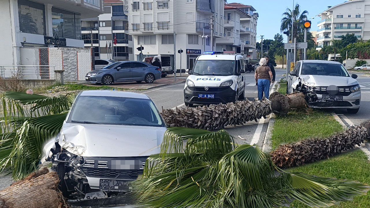 Otomobilin çarptığı palmiye kökünden kırılarak yola devrilirken araçtan burnu bile kanamadan inen otomobil sürücüsü, uzun süredir araç kullanmadığını ve pratik yaparken kaza yaptığını belirtti.