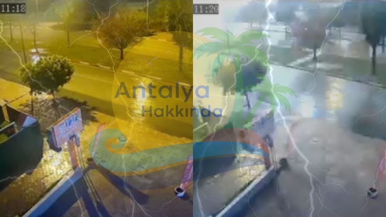 Şiddetli gök gürültüsü anı çevrede bulunan bir iş yerinin güvenlik kamerasına yansıdı. Görüntülerde ani bir ışık parlamasının ardından gelen yüksek sesin çevreyi etkilediği görülürken, olayın şiddeti net şekilde kaydedildi.