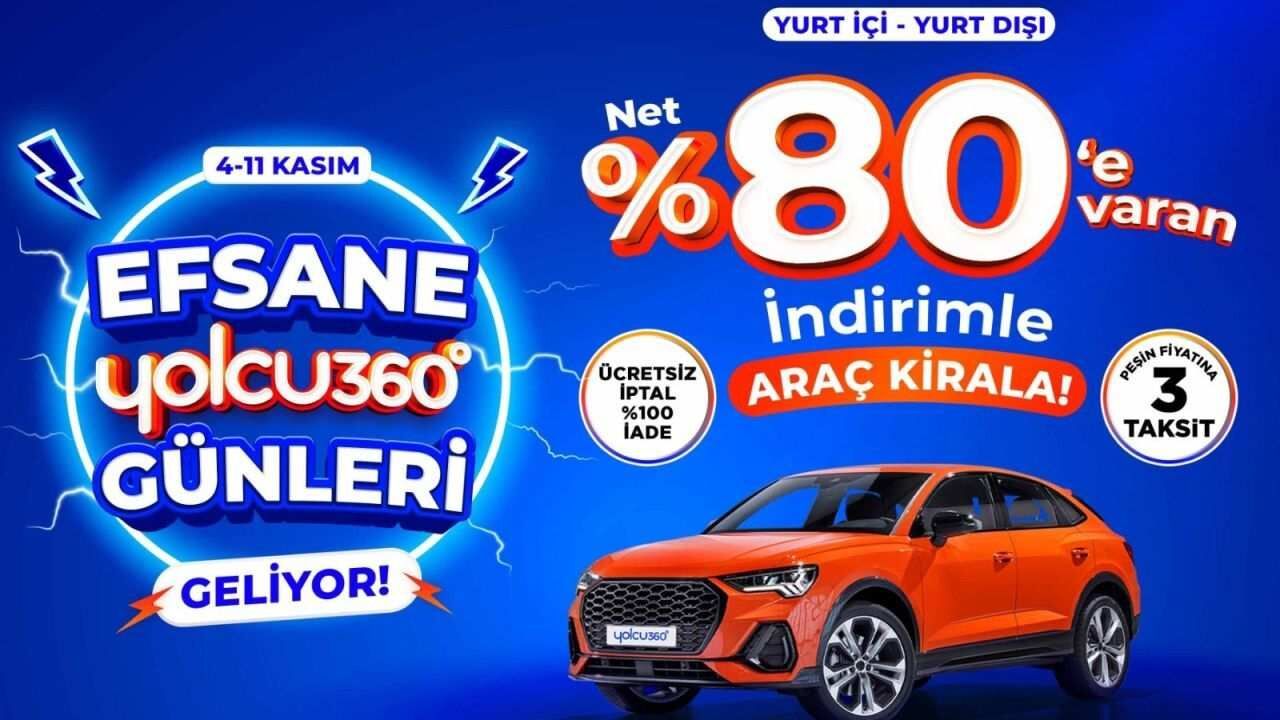 Efsane Yolcu360 Günleri dönemlerinde, araç kiralama rezervasyonlarına net %80’e varan indirim fırsatları sizi bekliyor. Bu kampanya sayesinde hem erken rezervasyon avantajı yakalayabilir hem de yılın en uygun fiyatlarıyla seyahatinizi planlayabilirsiniz.