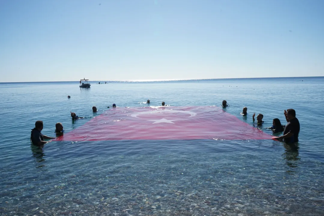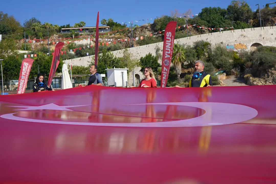 Antalya'da 29 Ekim Cumhuriyet Bayramı'nın 102'nci yıl dönümü kapsamında Konyaaltı Sahili'nde bir araya gelen Konyaaltı Sualtı Sporları Kulübü (ANTSAK) üyeleri dalış gerçekleştirdi. Etkinlik öncesinde kulüp üyeleri, Konyaaltı Sahili'nde hazırlandı. Ardından suya giren dalgıçlar, ellerinde Türk bayrağıyla bir süre dalış yaptı. Bayrak açma anları, su altı kameralarıyla görüntülendi. Katılımcılar sudan karaya Türk bayrağı ile çıkarak saygı duruşunda bulunup, İstiklal Marşı'nı okudu. Sahildeki vatandaşların da katılımıyla 10'uncu Yıl Marşı'nı söyleyen dalgıç ekibi, Cumhuriyet'in 102'nci yılını coşkuyla kutladı.