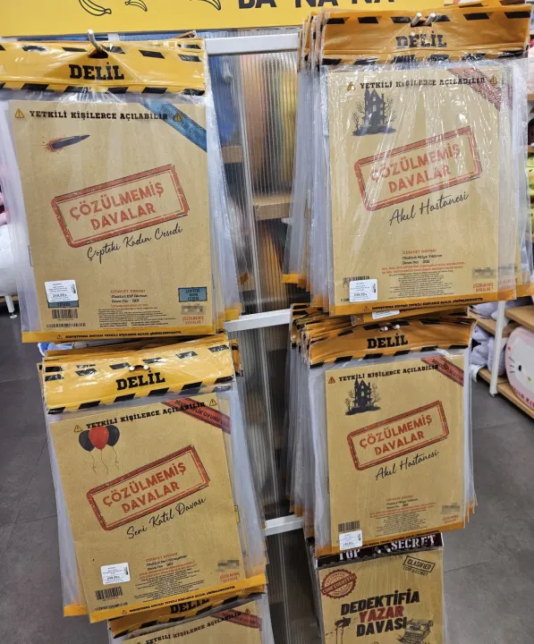 'Çözülmemiş Davalar- Dedektiflik Oyunu' adı altında çeşitli cinayet senaryolarını içeren, 12 yaş ve üzeri çocuklara yönelik birçok oyuncakçı, kitapçı, kırtasiye ile internet üzerinden satışı yapılan oyunlara, eğitim sendikalarından tepki geldi. Bir dava dosyası şeklindeki oyunların isimleri 'Çöpteki Kadın Cesedi, Mahzendeki Cinayet, Akıl Hastanesi, Düğün Günü Cinayeti, Seri Katil Davası, Mısır'da Firavun Cinayeti, Zehir Cinayeti, Kanlı Para Cinayeti, Psikopat Davası, Arınma Gecesi Davası, Kanlı Sevgililer Günü, Kanlı Aile, Bir Arazi 4 Ceset, Balayında Cinayet, Sahnede Cinayet, Derede Cinayet, Şarkıcı Cinayeti' gibi sıralanıyor. Her yaştan çocuğun girdiği mağazalarda bile satışı yapılan, 12 yaş üstü çocuklar ve gençlere yönelik 'tüyler ürpertici' olarak nitelendirilen oyunlara tepki gösteren Eğitim Bir-Sen, Türk Eğitim Sen, Eğitim İş ve Eğitim Sen'in yöneticileri, ilgili bakanlıklara önlem alınması çağrısında bulundu.