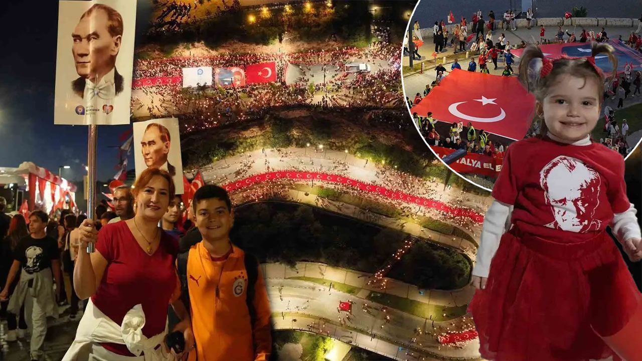 Öğrenci Andı ve Atatürk’ün Gençliğe Hitabesi hep birlikte okundu; kıyı şeridi boyunca balkonları dolduran vatandaşlar da alkışlarıyla bu anlara eşlik etti. 7’den 70’e her yaştan Antalyalı, sloganlar ve marşlar eşliğinde Cumhuriyet’in 102. yılının coşkusunu yaşadı. Meşalelerin aydınlattığı kortej, kilometrelerce yürüyüşün ardından Cumhuriyet Meydanı’na ulaştı.