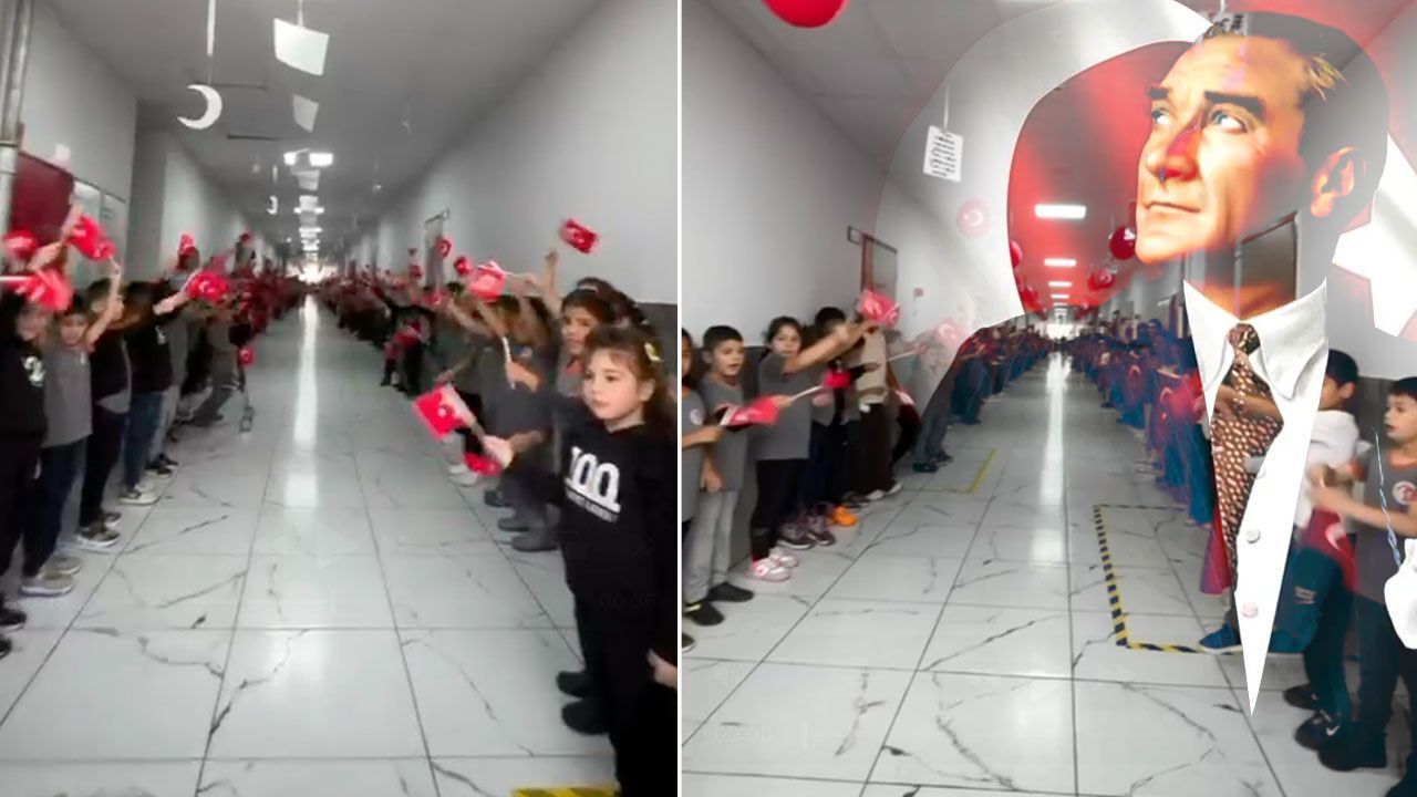 Antalya’da, Kepez 100. Yıl Cumhuriyet İlkokulu öğrencileri, 29 Ekim Cumhuriyet Bayramı’nı büyük bir coşkuyla kutladı. Ellerinde Türk bayrakları ile okul koridorlarını dolduran minik öğrenciler, kutlamalara neşe kattı.