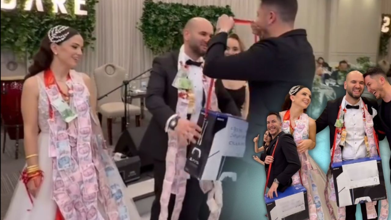 Antalya’da gerçekleştirilen bir düğünde damadın arkadaşı tarafından verilen hediye, salonda renkli anların yaşanmasına neden oldu. Damada PlayStation 5 hediye eden arkadaşı, kutunun üzerine yazdığı notla da dikkat çekti. Damadın duygu karmaşası yaşadığı anlar kameralara yansıdı.