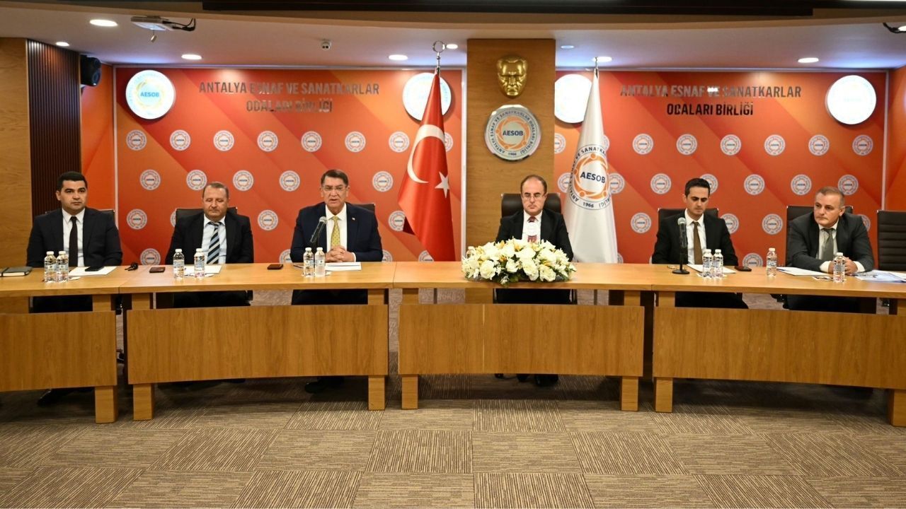 Antalya Esnaf ve Sanatkârlar Odaları Birliği (AESOB) ev sahipliğinde gerçekleştirilen geniş katılımlı toplantıya; Antalya Defterdarı İlhan Karayılan, Gelir İdaresi Grup Müdürleri Bayram Alkan ve Özer Aslan, Denetim Koordinasyon Müdürü Ramazan Özen, Gelir Uzmanı Mustafa İpek ve merkez oda başkanları katıldı. Toplantıda, son vergi düzenlemeleri, Antalya genelinde yürütülen mali denetimler, basit usul mükellefler için getirilen yeni uygulamalar, KDV oranlarındaki güncellemeler ve 1 Ekim 2025’te devreye alınan “KURGAN” sistemi ele alındı.