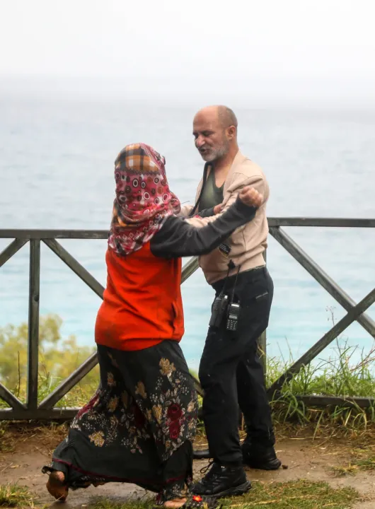 Olay yerine gelen itfaiye ekibi, ağaca bağladığı halat yardımıyla yaklaşık 20 metrede mahsur kalan Nubar B.'nin yanına indi. Ekipmanlar yardımıyla itfaiye erinin halatla bağladığı Nubar B., yukarı çıkarıldı. Mahsur kaldığı yerden kurtarılan Nubar B., sağlık ekibinin kontrol teklifini reddetti. Bu sırada görüntü alan gazetecilere kendisini çekmemesini söyleyen Nubar B., başörtüsü ile yüzünü kapatıp güneş gözlüğü taktıktan sonra basın mensuplarına saldırdı. İtfaiye erlerinin araya girmesinin ardından Nubar B., kontrol için ambulansa alındı.