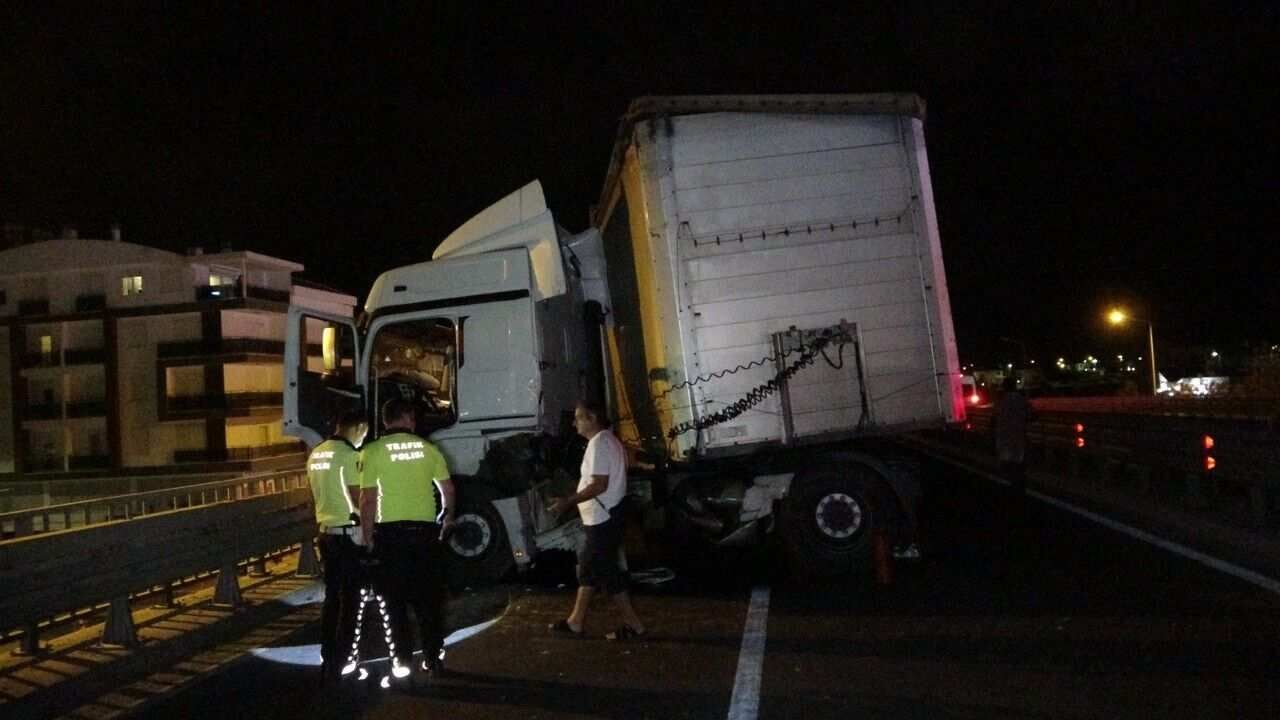 Kaza, D-400 Karayolu Sorgun-Otogar Köprülü Kavşağı’nda meydana geldi. Edinilen bilgiye göre, Alanya istikametinden Antalya istikametine seyir halindeki Ercan Ş’’nin kullandığı 07 BYT 410 plakalı otomobille, aynı yönde ilerleyen Mehmet Reşat D. idaresindeki 27 AFM 221 plakalı tır çarpıştı.Çarpmanın şiddetiyle savrulan otomobil bariyerlere vurup hurdaya dönerken, tır da köprülü kavşağın bariyerlerine çarparak durabildi. Kazada otomobil sürücüsü Ercan Ş. yara almadan kurtulurken, tır sürücüsü Mehmet Reşat D. kabinde sıkıştı.