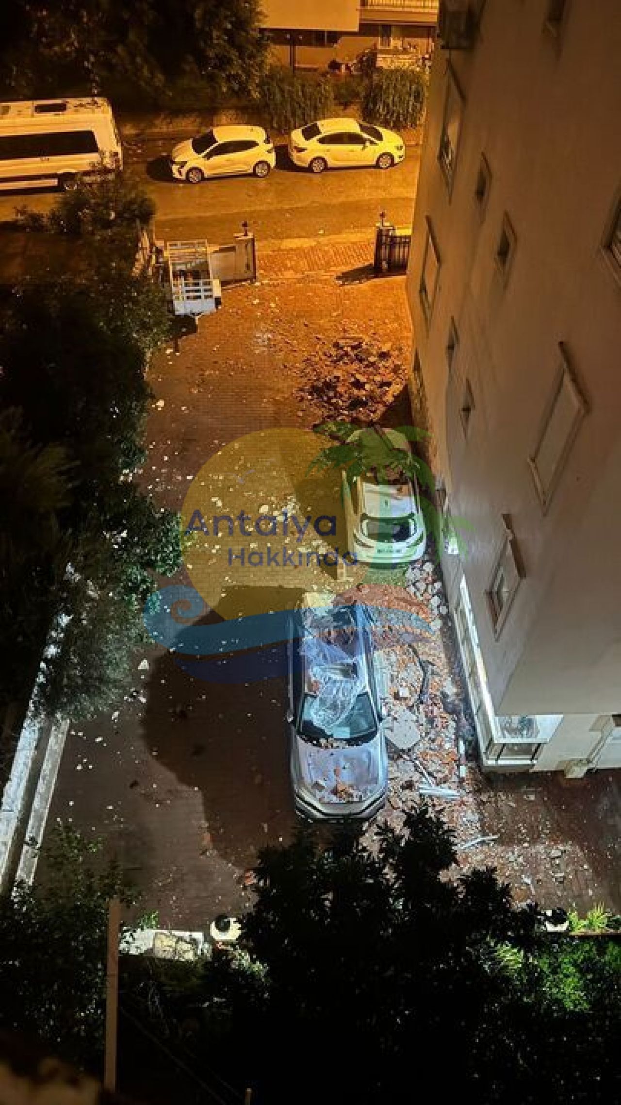 Antalya’da gün boyunca etkisini sürdüren fırtına ve yağış, Muratpaşa ilçesine bağlı Kızıltoprak Mahallesi’nde felaketin eşiğinden dönüldü. Şiddetli rüzgarın etkisiyle bir binanın beton çatısı büyük bir gürültüyle çökerken çevrede kısa süreli panik yaşandı. Çatıdan kopan büyük beton parçaları aşağıda duran park halindeki araçların üzerine düştü.