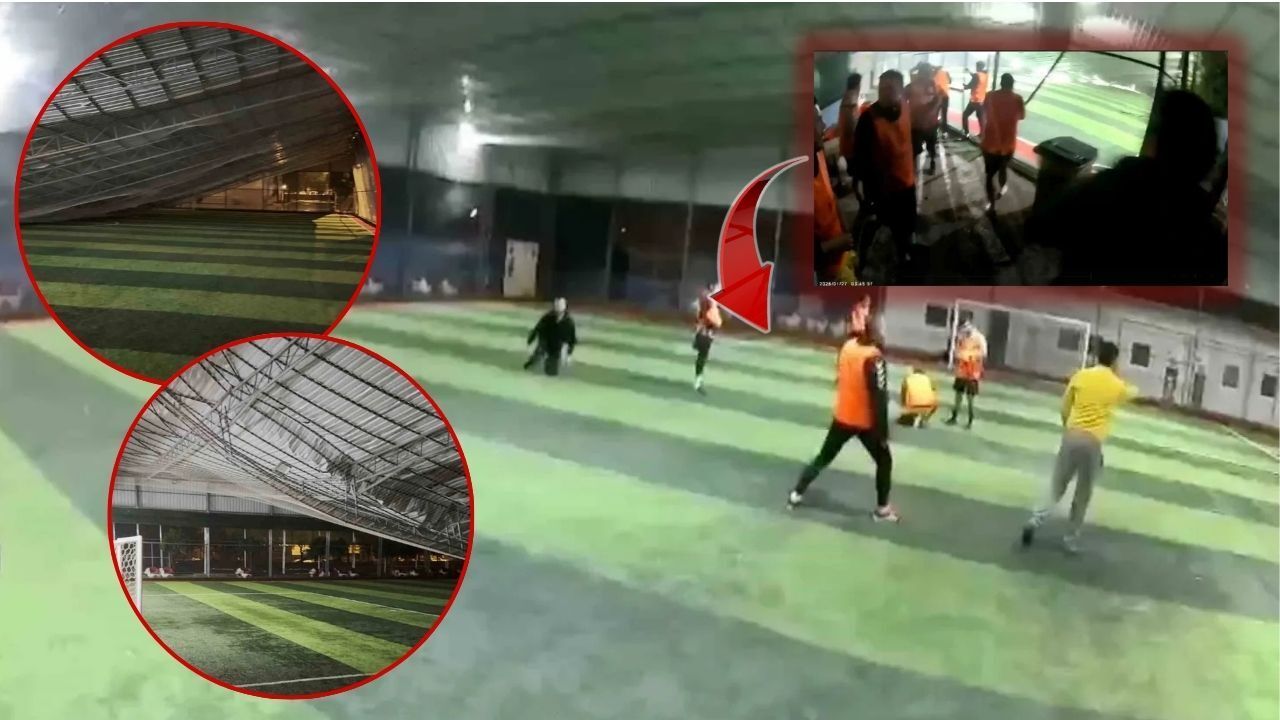 Kepez bölgesinde ise Gündoğdu Mahallesi’nde bulunan bir halı sahanın çatısı, maç oynandığı sırada kuvvetli rüzgara dayanamayarak çöktü. Futbolcuların oyuna başlamaya hazırlandığı anlarda yaşanan olayda kimse yaralanmazken, çatıdan gelen seslerden tedirgin olan oyuncuların diyalogları da görüntüye yansıdı. Saha hakkında konuşan futbolcular biranda gelen gürültüyle sahadan koşarak kaçarken, sahayı terk ettikleri anda çatıda çökme yaşandı. O anlar oyunculardan birinin aksiyon kamerasına saniye saniye yansıdı.