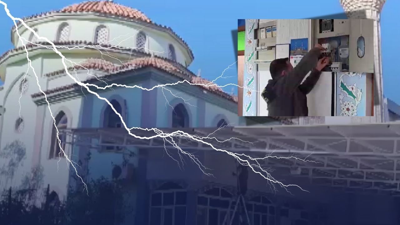 "İlçemizde çıkan fırtınaya bağlı şişmek çakması sonucu caminin grup sigortasını yanmış. Dışarıda ve içeride prizlere zarar vermiş. Onun tadilatı için geldik"