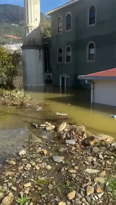 “Şu anda Mahmutlar Mahallesi Kılıçarslan Caddesi, Cami Deresi’nin olduğu bölgedeyiz. Dün akşam da gece de buradaydık, gündüz de buradayız. Ama maalesef camimizi su bastı. Derenin acilen açılması gerekiyor”