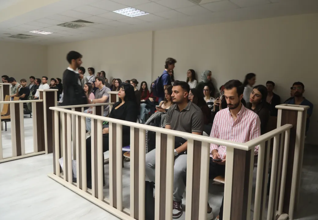 Antalya Akdeniz Üniversitesi Hukuk Fakültesi’nin duruşma salonunda yapılan etkinliğin konusu bu kez “insan ticareti” oldu. Öğrenciler; hâkim, savcı, avukat, mübaşir, katip, mağdur ve sanık gibi yargının tüm taraflarını canlandırdı. Duruşma öncesinde Hakim Kolcu nezaretinde dava dosyası incelendi, ardından yaklaşık iki saat süren farazi duruşma büyük ciddiyetle yürütüldü. Özellikle 3. ve 4. sınıf öğrencilerinin yoğun ilgi gösterdiği etkinlik, fakültede yılda iki kez düzenleniyor.