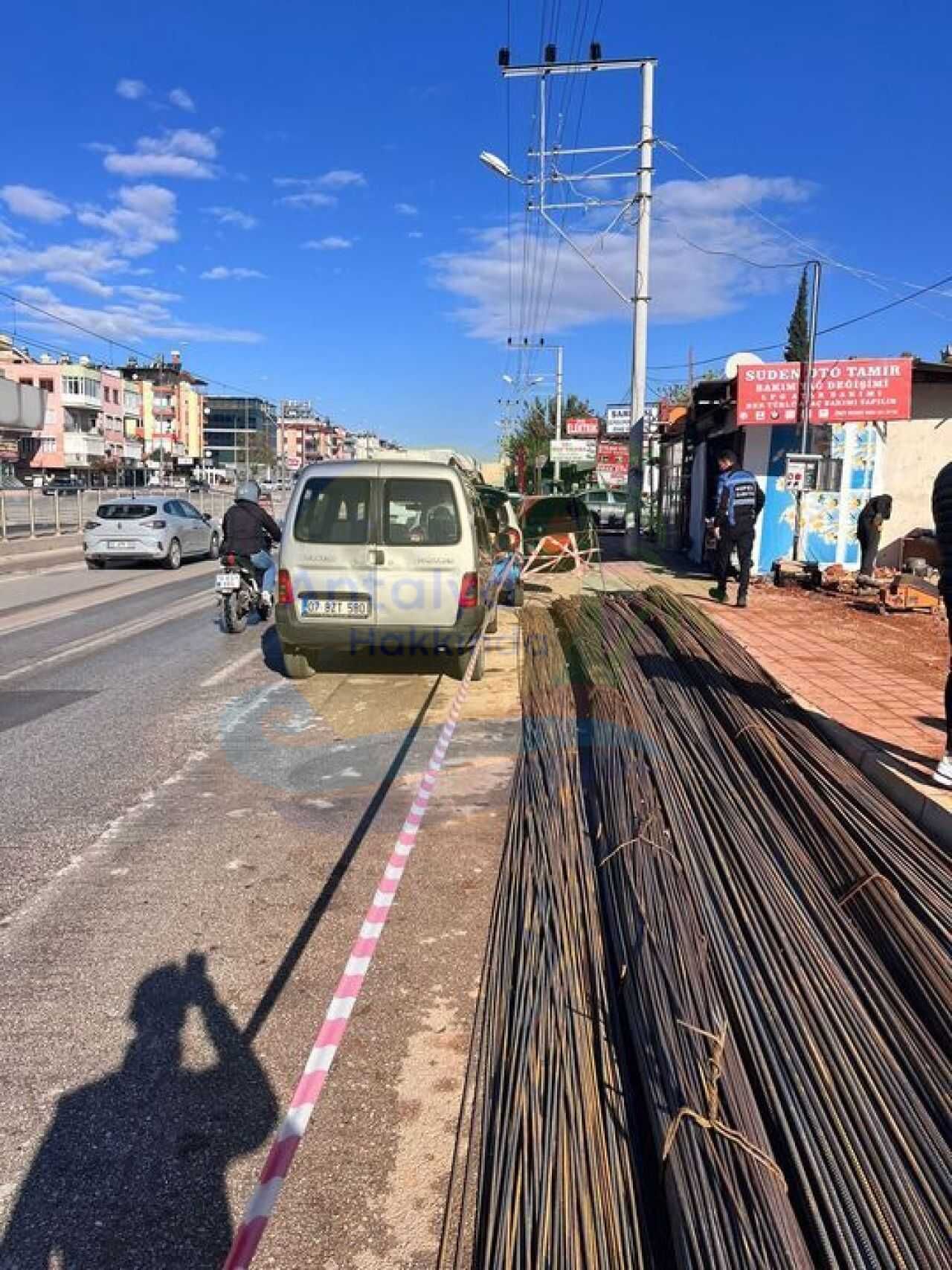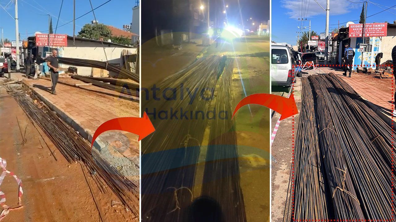 Antalya’nın Kepez ilçesinde inşaat demirlerinin yola bırakılmasına vatandaşlar tepki gösterdi. Yola gelişigüzel bırakılan inşaat demirleri bir vatandaşın cep telefonu kamerasıyla görüntülendi.