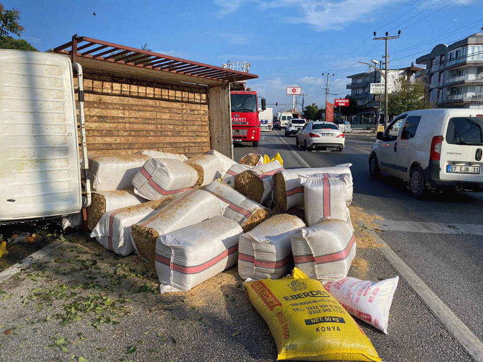 Kaza, saat 15.30 sıralarında Serik ilçesi D400 kara yolu Burmahancı Kavşağı’nda meydana geldi. Edinilen bilgiye göre, Recep K. (55) yönetimindeki 07 CSH 62 plakalı kamyonet, sürücüsünün direksiyon hâkimiyetini kaybetmesi sonucu devrilerek refüjdeki demir bariyerlere çarptı. Çarpmanın etkisiyle araç yan yattı ve kasasındaki samanlar yola savruldu. Sürücü ile yolcu konumundaki eşi araçtan kendi imkânlarıyla çıktı. İhbar üzerine bölgeye sağlık, polis ve itfaiye ekipleri sevk edildi. Sürücü ve yanındaki eşinin olay yerine gelen başka bir araçla olay yerinden ayrıldığı ileri sürüldü. Trafik akışı bir süre tek şeritten sağlanırken, yolun temizlenmesiyle trafik normale döndü.Polis kazayla ilgili inceleme başlattı.