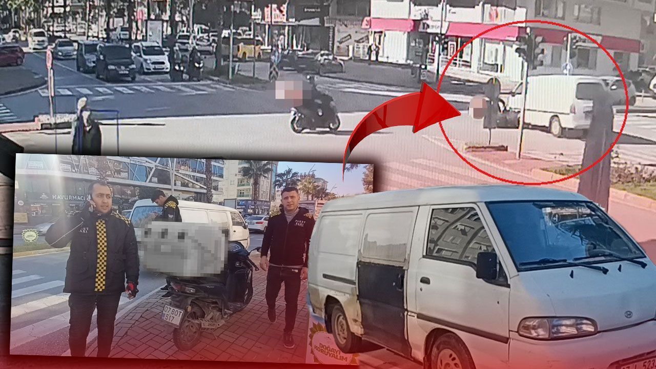 Güvenlik kamerasına saniye saniye yansıyan kazada motosiklet sürücüsünün kamyonetle çarpıştıktan sonra yere düştüğü ve aracın altında kalmaktan son anda kurtulduğu yer aldı.
