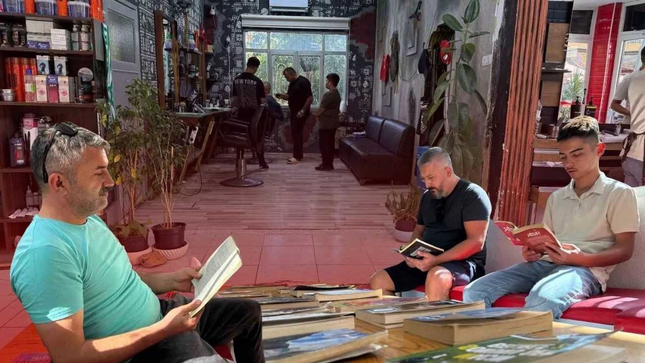 "30 yıldır berberlik yapıyorum. İnsanlar eskiden genelde gazete okurdu. Zamanla herkes telefona gömüldü, kimseyle konuşmuyorlar. En azından müşterilerin burada gelip kafalarını dinlemeleri için böyle bir şey yaptım. Bana destek olan müşteriler de dükkana kitap getirip bıraktılar. İsteyen kitapları okumak için evine de götürebiliyor. Görenler de takdir ediyor. Tıraş olmaya gelen öğretmenler de bu uygulamayı devam ettirmemi ve gençlerin kitap okumasını istiyorlar. Bizim de gençlerin kitap okuyarak telefondan uzaklaşması, bir şeyler öğrenmesi hoşumuza gidiyor"