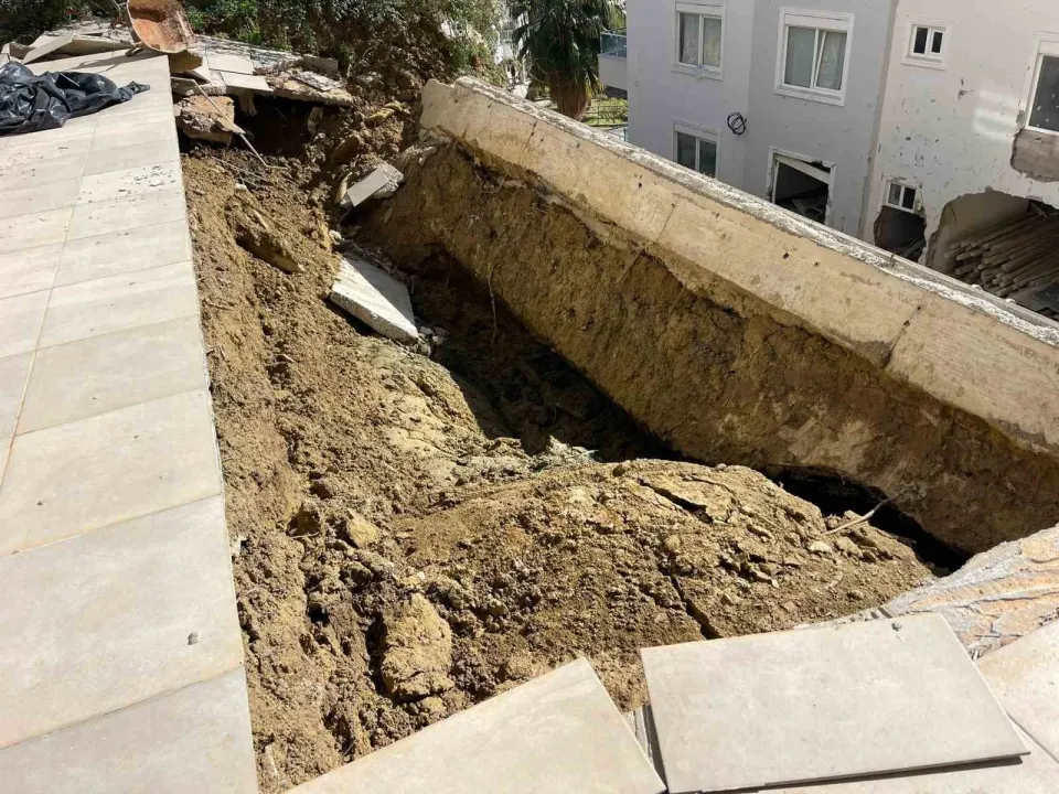 Antalya'nın Alanya ilçesine bağlı Avsallar Mahallesi Akyusuf Sokak’taki bir apartmanın bahçesinde yer alan yüzme havuzunda, geçtiğimiz pazar günü sağanak yağışın ardından toprak zeminle birlikte çökme meydana geldi. İhbar üzerine bölgeye İncekum Jandarma ekipleri, Alanya Belediyesi Zabıta ekipleri ile yapı denetim ekipleri sevk edildi.