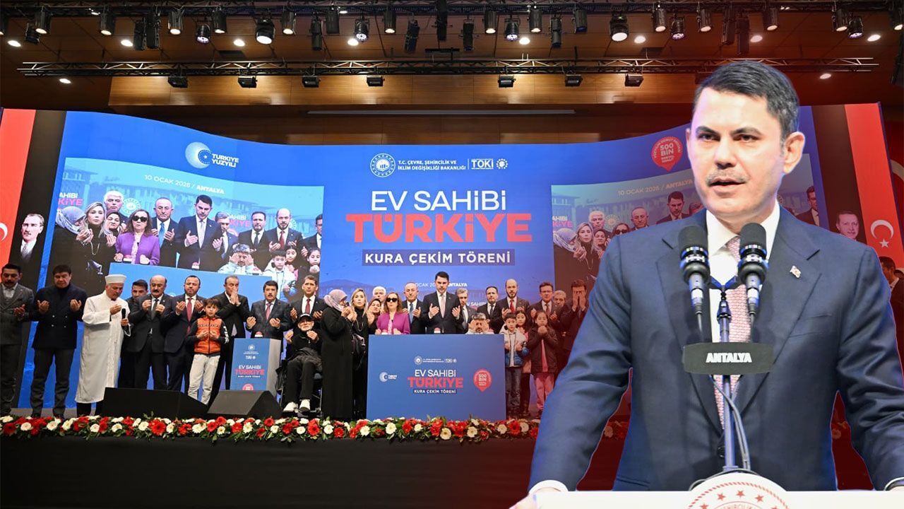 Antalya’da yapılacak 13 bin 213 sosyal konut için kura çekimi Mimar Sinan Kongre Merkezi’nde düzenlendi. Çevre, Şehircilik ve İklim Değişikliği Bakanı Murat Kurum’un da katıldığı tören, çok sayıda hak sahibi adayının yoğun ilgisiyle gerçekleştirildi.