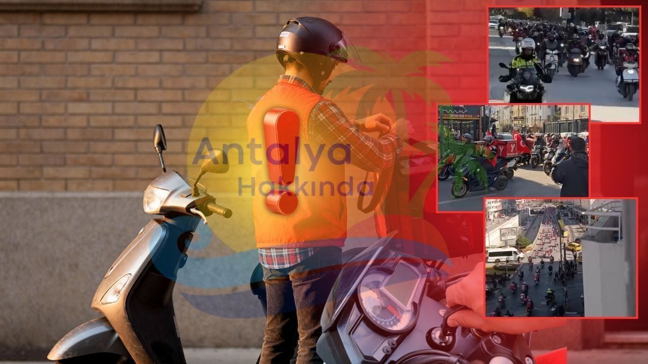 Antalya’daki eylem, Kepez ilçesinde Kültür Kafeler Caddesi olarak bilinen 3805 Sokak’ta başladı. Konvoy halinde ilerleyen kuryeler, Muratpaşa ilçesindeki 100. Yıl Bulvarı ve Evliya Çelebi Caddesi başta olmak üzere farklı noktalarda da görüntülendi. Motorize polis ekipleri eşliğinde gerçekleştirilen eylem sırasında trafikte zaman zaman yoğunluk ve aksamalar yaşandı.