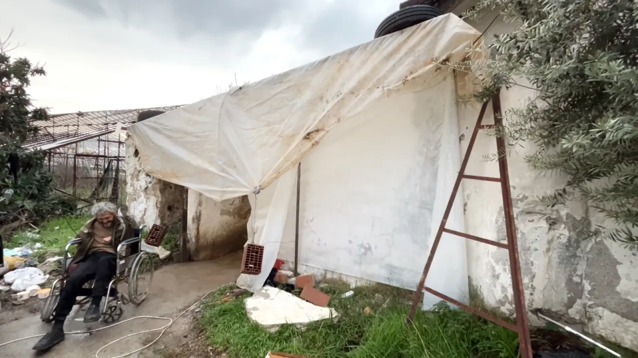 Yüzde 94 engelli raporu bulunan Cengiz, Bağ-Kur borcu nedeniyle emekli olamazken, maddi imkânsızlıklar sebebiyle düzenli tedavi de alamıyor. Yaklaşık 1 yıldır muşambayla çevrili, altyapısı olmayan ve hijyen koşullarından yoksun bir alanda yaşam mücadelesi veren Cengiz, komşularının yardımı ve belediyenin sağladığı sınırlı destekle ayakta kalmaya çalışıyor.