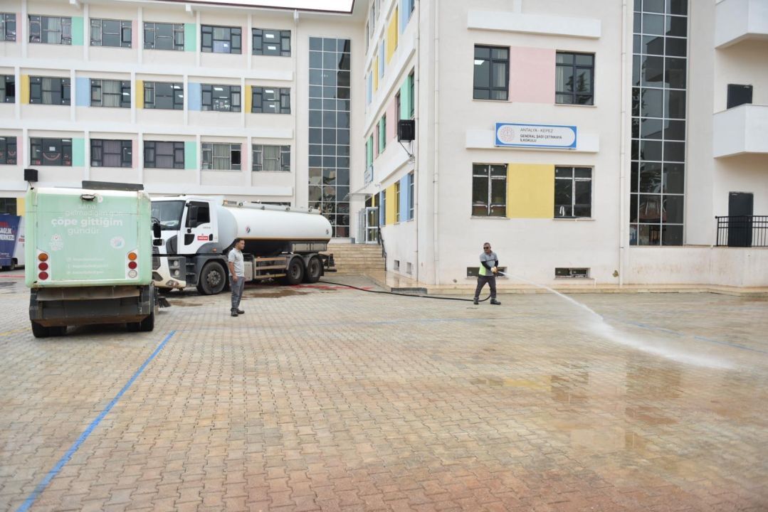 Kepez Belediyesi, bir yandan öğrencilere göz taraması hizmeti sunarken, diğer yandan eğitimlerini daha sağlıklı ve temiz ortamlarda sürdürebilmeleri için okul bahçelerinde kapsamlı temizlik çalışmaları yürütüyor. Bu kapsamda, Temizlik Müdürlüğü ekipleri, göz sağlığı taraması yapılan General Şadi Çetinkaya İlkokulu’nun bahçesinde kapsamlı temizlik çalışması gerçekleştirdi. Okul bahçesi önce süpürge aracıyla temizlendi, ardından kapsamlı bir şekilde yıkanarak hijyenik hale getirildi.