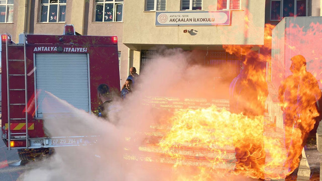 Antalya'nın Serik ilçesine bağlı Akçaalan Mahallesi'nde bulunan ilkokulda meydana gelen olayda, okulda çalan yangın alarm sesini duyan mahalle sakinleri durumu 112 Acil Çağrı Merkezine haber verdi.