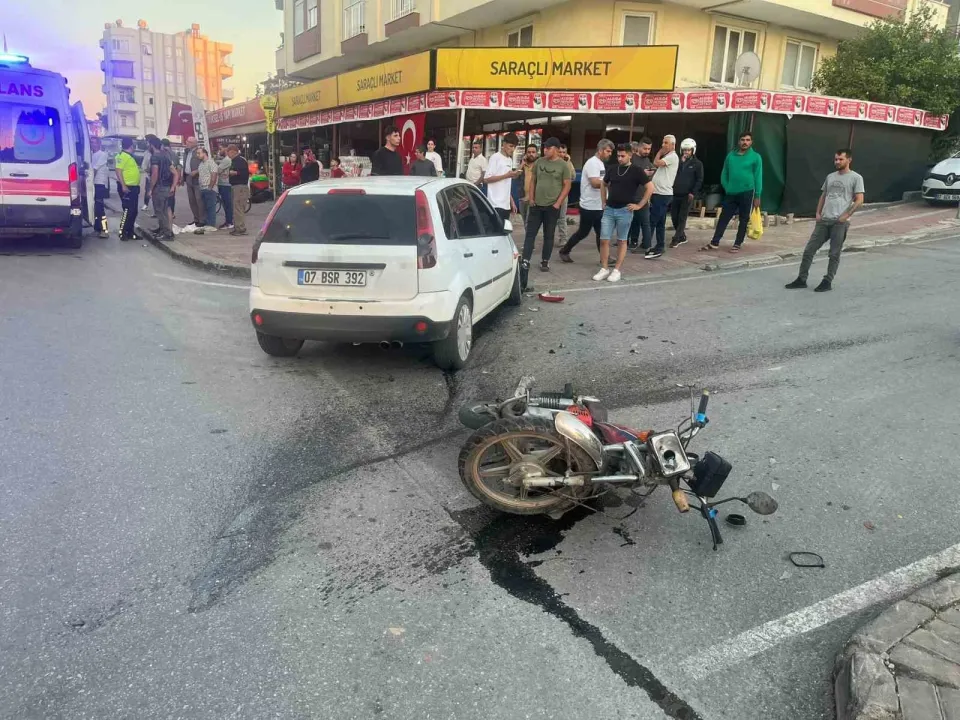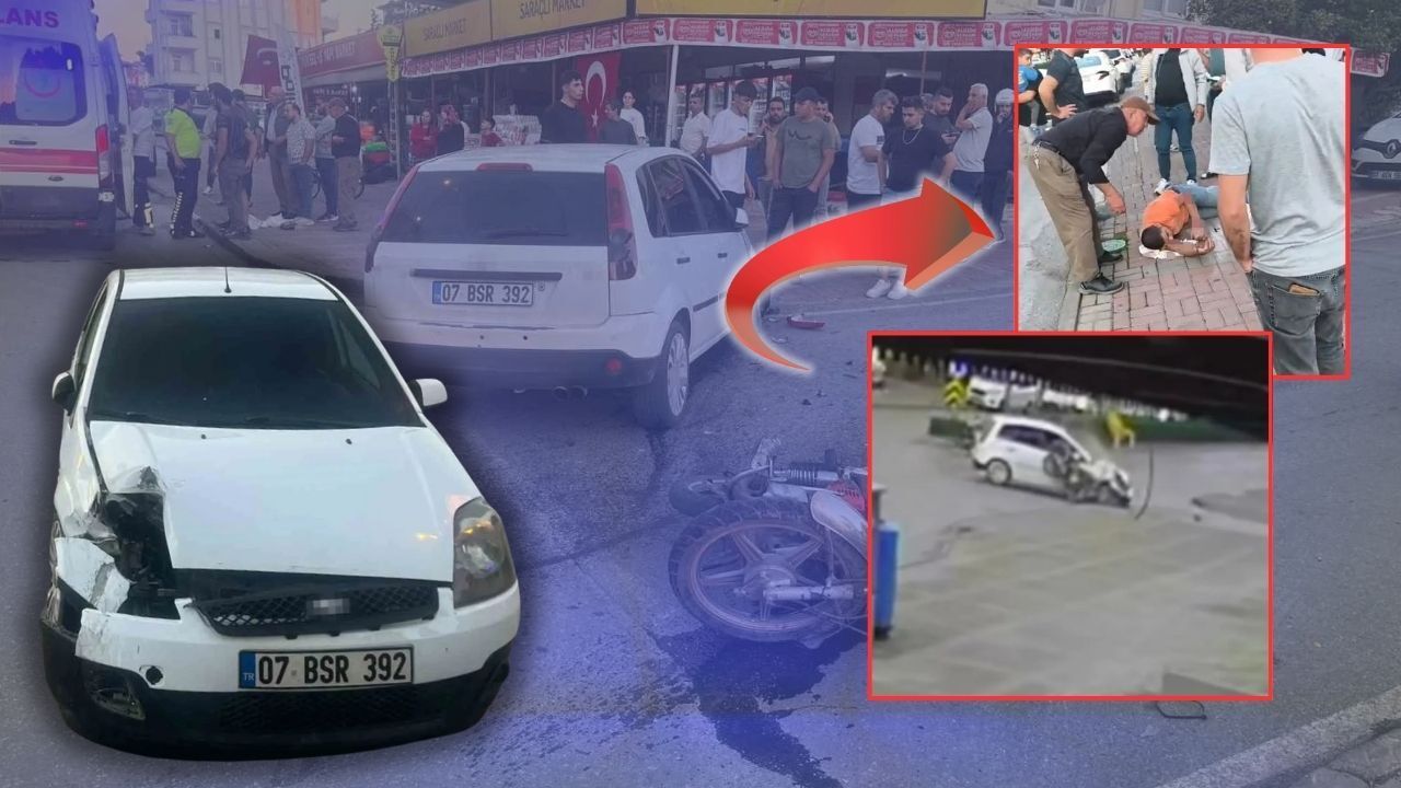 Kaza, Manavgat ilçesi Remzi Güven Caddesi Bayır Mezarlığı istikametinde meydana geldi. Edinilen bilgilere göre, yabancı uyruklu Abdulhadı A. idaresindeki plakasız motosiklet, kavşakta Hüsnü O. yönetimindeki 07 BSR 392 plakalı otomobille çarpıştı. Kazada motosiklet sürücüsü Abdulhadı A. yaralandı. İhbar üzerine bölgeye polis ve sağlık ekipleri sevk edildi. Olay yerine gelen sağlık ekipleri, yaralı sürücüye ilk müdahaleyi yaptıktan sonra ambulansla hastaneye kaldırdı. Polis ekiplerinin yaptığı incelemede, motosiklet sürücüsünün ehliyetsiz olduğu, motosikletin şase ve motor numaralarının kazınmış olduğu ve plakasının bulunmadığı belirlendi. Kaza anı ise güvenlik kamerasına yansıdı. Görüntülerde kavşaktan yola çıkmaya hazırlanan otomobile çarpan motosiklet sürücüsünün çarpmanın etkisiyle havalanıp takla atarak otomobilin diğer tarafına düştüğü anlar kayda girdi. Polis ekipleri, kriminal inceleme sonuçlarına göre gerekli cezai işlemlerin uygulanacağını bildirdi.