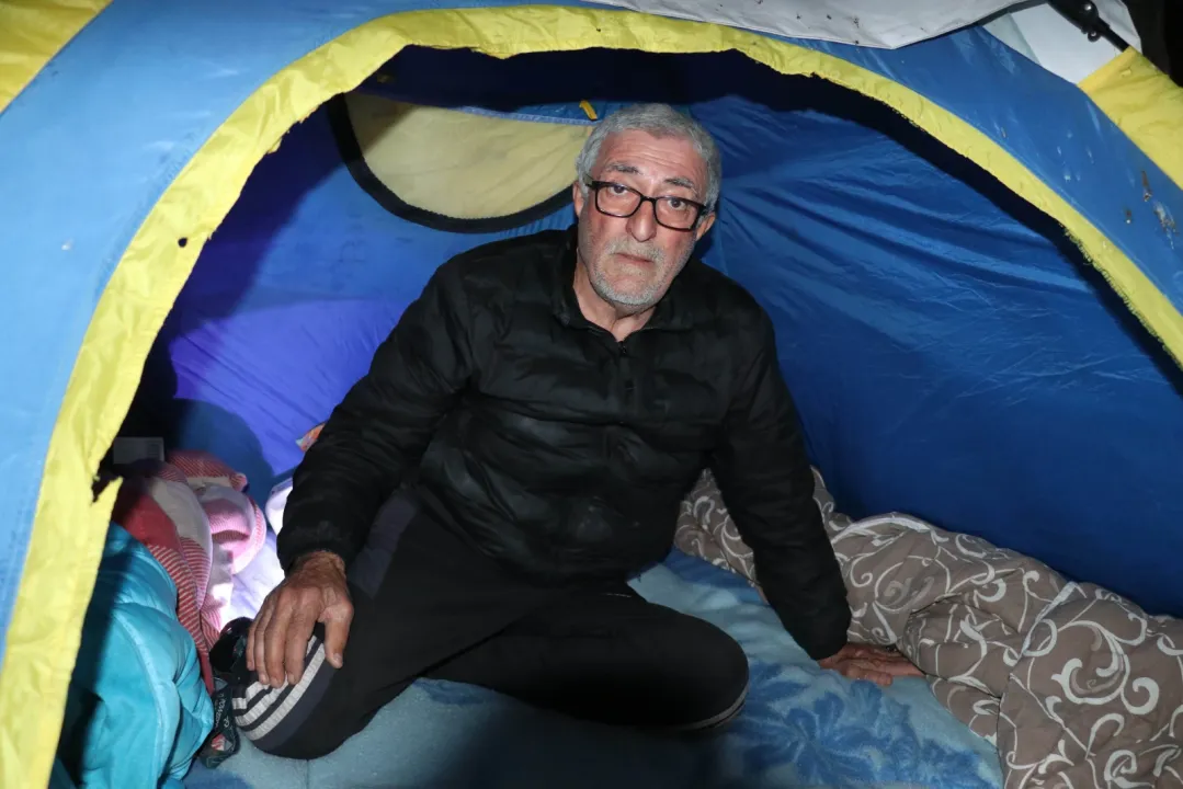 1,5 aydır parkta kurduğu çadırda yaşadığını söyleyen Necdet Tilif,