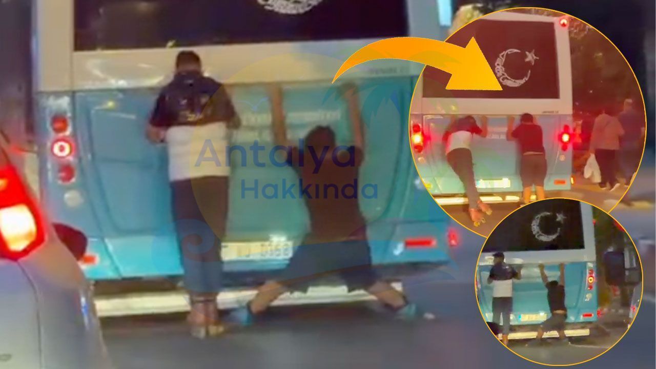 Antalya trafiğinde seyir halindeki bir halk otobüsünün arkasına asılan patenli gençler yürekleri ağza getirdi. Halk otobüsünün arkasına asılarak seyahat eden patenciler, kendi canlarını tehlikeye attı. Cep telefonu kamerasına yansıyan görüntülerde, gençlerin otobüse tutunarak tehlikeli hareketler yaptığı görüldü. Trafikteki diğer sürücüler, olası bir kazanın önüne geçilmesi için bu tür tehlikeli davranışlara karşı denetimlerin artırılmasını istedi.