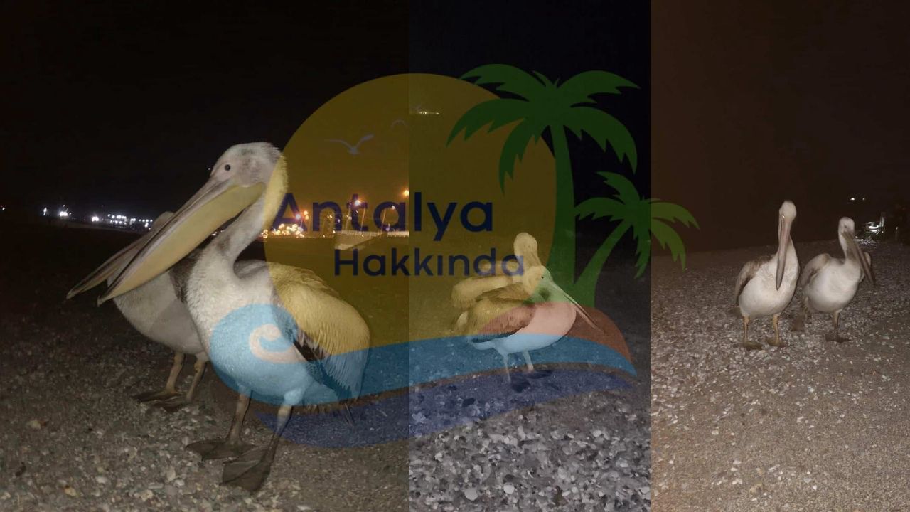 Antalya'nın Konyaaltı Sahilde nadir rastlanan bir olay yaşandı. Akşam saatlerinde sahilde pelikanlar görüldü. Pelikanları “çok sevimli” bulduklarını söyleyen bazı kişiler ise sahilde renkli anlar yaşandığını ifade ederken, kimi vatandaş ise pelikanların koruma altına alınması gerektiğini ifade ederek, yetkililere seslendi.