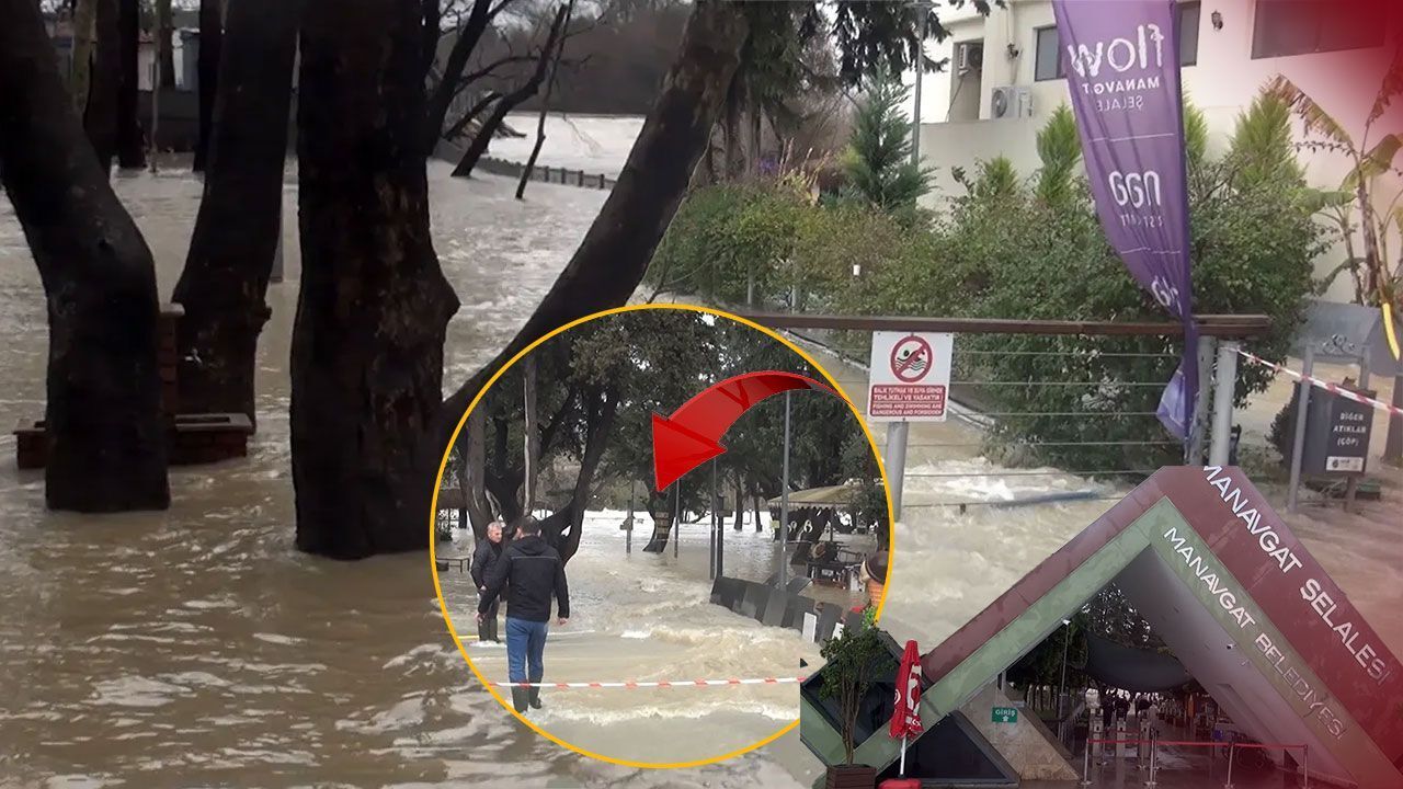 Antalya’da dün geceden bu yana aralıksız süren sağanak, Manavgat’ta ciddi etkilere yol açtı. Yağışların ardından Manavgat Irmağı’nın debisi kısa sürede yükseldi. Artan su kütlesi, taşkına neden oldu.