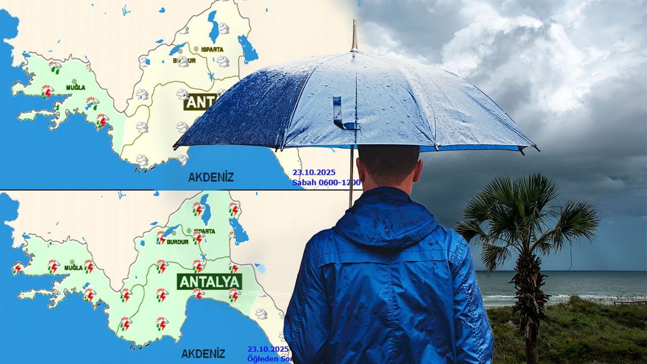 Meteoroloji Genel Müdürlüğü'nden alınan bilgilere göre Antalya ve ilçelerinde 23 Ekim Perşembe günü (Bugün) havanın parçalı çok bulutlu, aralıklı sağanak ve gök gürültülü sağanak yağışlı geçmesi tahmin ediliyor. Hava sıcaklığında önemli bir değişiklik beklenmezken, rüzgarın güney, Antalya civarları yer yer kuzey yönlerden hafif, zaman zaman orta kuvvette, yağış anında yer yer kuvvetlice eseceği açıklandı.
