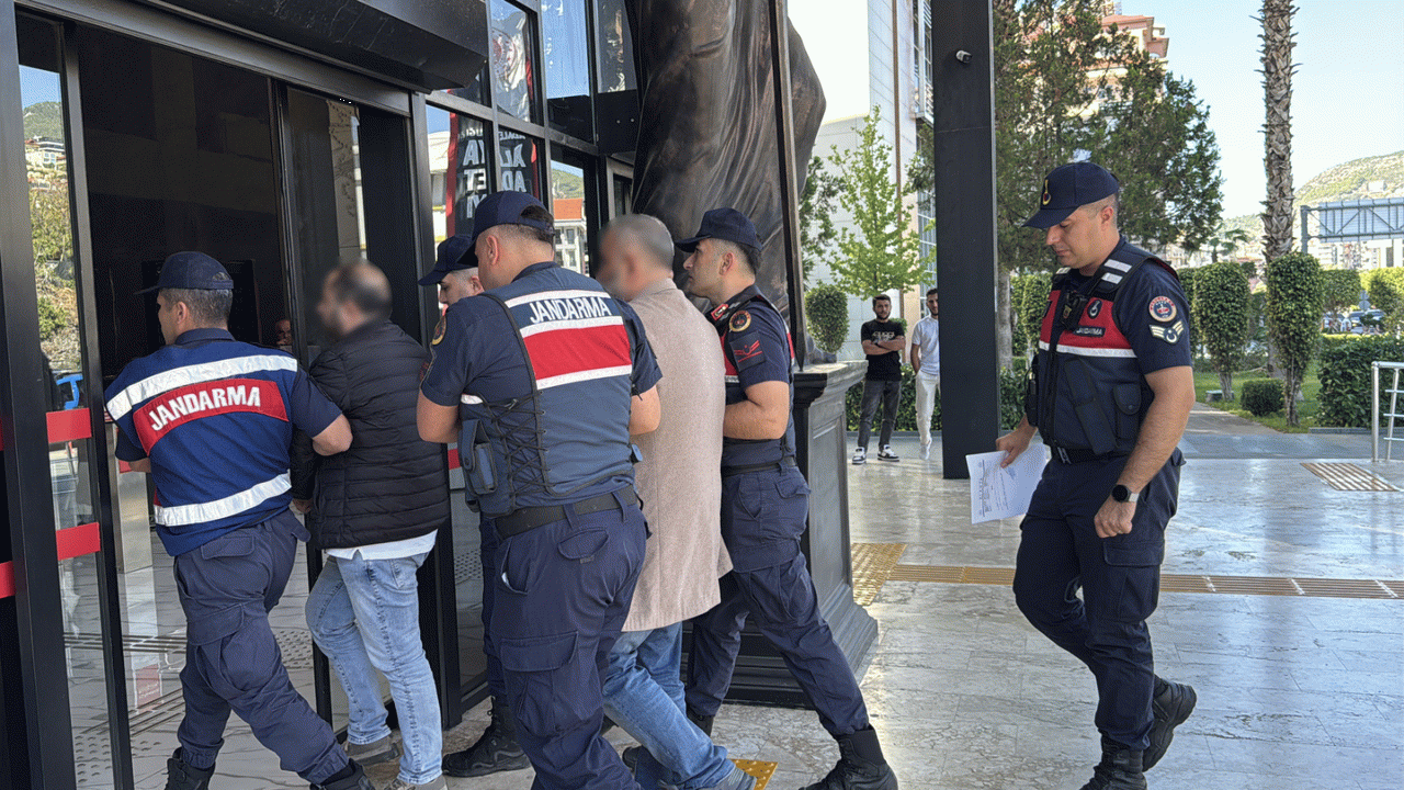 Gözaltına alınan A.J, H.K, V.V, A.K. F.O. ve S.O. Alanya İlçe Jandarma Komutanlığı’ndaki işlemlerinin ardından Alanya Adliyesi’ne sevk edildi.