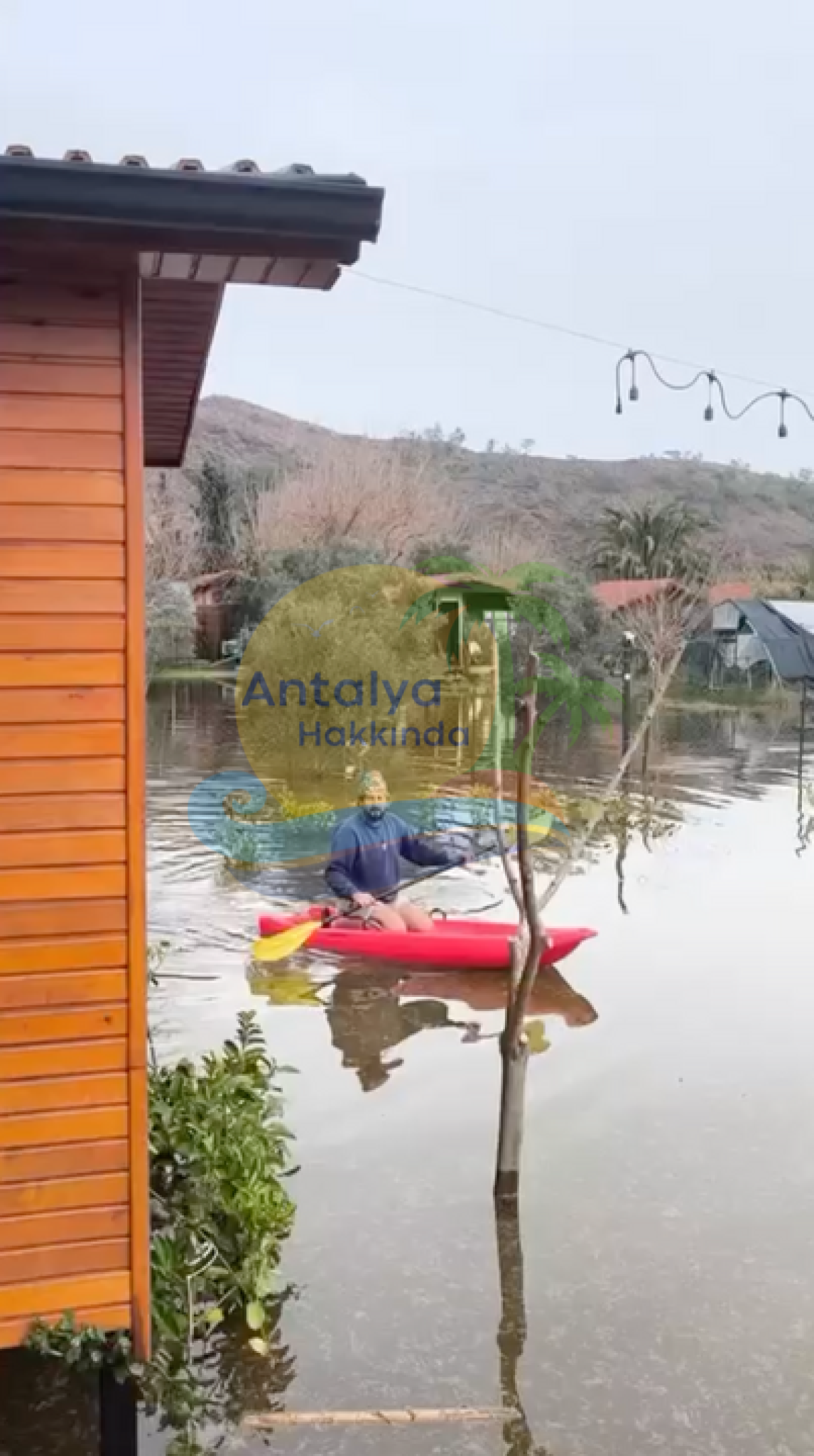 Antalya’da etkili olan yağışların ardından farklı bölgelerden olumsuzluk haberleri gelmeye devam ederken, bu kez Kemer ilçesine bağlı Çıralı’da bir yaşam alanını su bastı. Taşkın nedeniyle bölgedeki alanın büyük bölümünün sular altında kaldığı görülürken yaşanan durum, çevrede bulunan vatandaşlar tarafından cep telefonu kamerasıyla kaydedildi. Görüntülerde bir vatandaşın su basan alanda kano yaparak ilerlediği anlar yer aldı.