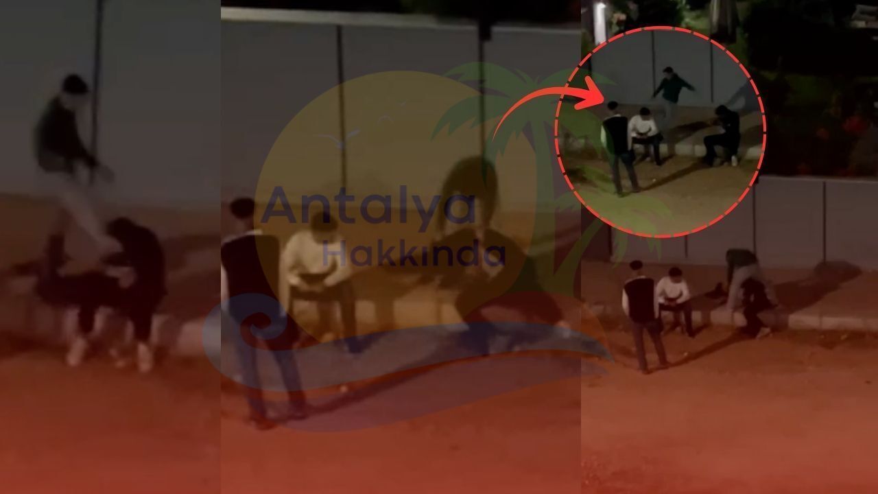 Dün gece saatlerinde Antalya'nın Kepez İlçesi Hüsnü Karakaş mahallesinde yaşanan kavga cep telefonu kamerasına yansıdı.Görüntülerde bir grup gencin kaldırım kenarında oturduğu, kısa bir süre sonra içlerinden birinin diğer üç kişiye doğru saldırdığı görüldü.