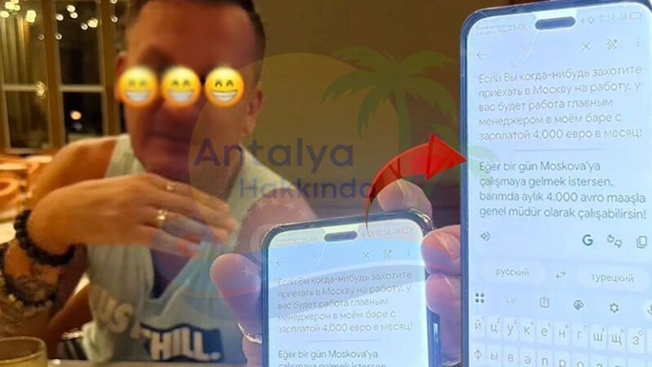 Antalya’daki bir otelde çalışan barmen, yabancı bir turistten hayatını değiştirebilecek ilginç bir teklif aldı. Turist, “Moskova’daki barımda genel müdür ol, sana günlük 4 bin avro maaş vereyim” dedi. O anlar barmenin cep telefonuna yansıdı.