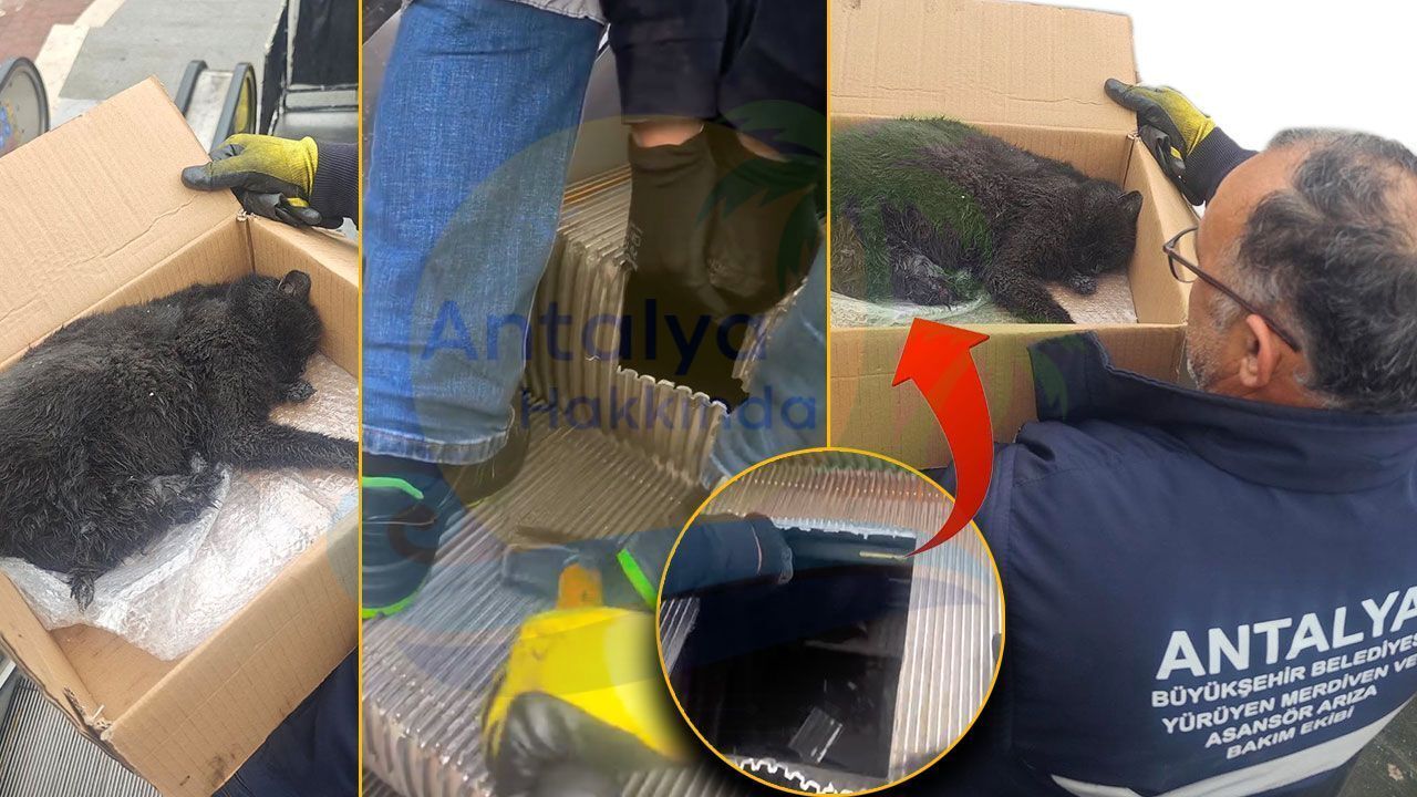 Antalya'nın Konyaaltı ilçesinde meydana gelen olayda yürüyen merdivenlere sıkışan bir kedi Antalya Büyükşehir Belediyesi Yürüyen Merdiven ve Asansör Arıza Bakım Ekibi tarafından kurtarıldı. O anlar cep telefonu kamerasına yansıdı.