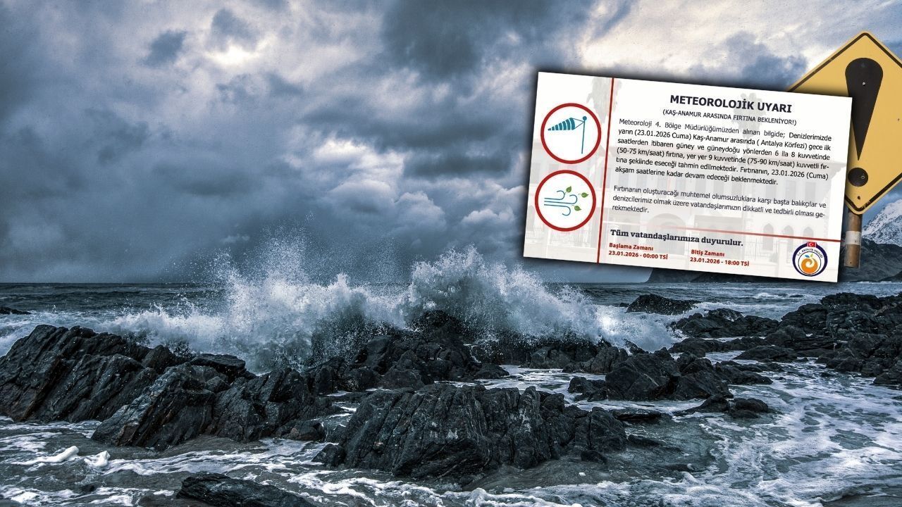 Meteoroloji 4. Bölge Müdürlüğü’nden alınan bilgilere göre, 23 Ocak Cuma günü Kaş–Anamur arasında yer alan Antalya Körfezi’nde fırtına bekleniyor. Fırtınanın gece saatlerinden itibaren etkisini göstermesi öngörülüyor.