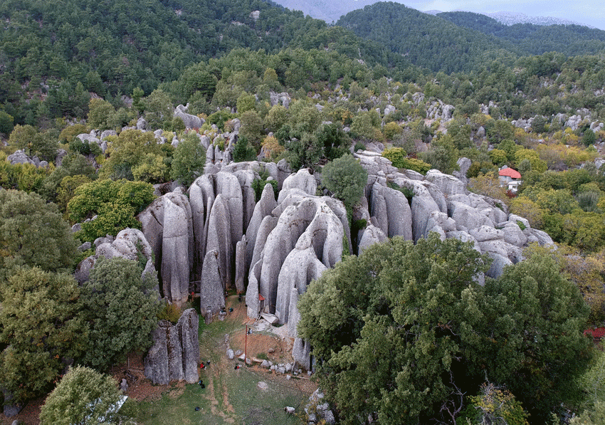 Bölgedeki kayaların oluşumu, jeolojik açıdan oldukça dikkat çekici. Yüzyıllar boyunca kum ve çakılların yüksek basınç altında birleşmesiyle meydana gelen “konglomera taşları”, zamanla sertleşerek insan silüetlerine benzeyen devasa figürler ortaya çıkardı. Halkın “Adam Kayalar” ismini verdiği bu yapılar, sanki bir bilim kurgu filminden çıkmış gibi görünüyor. Endemik bitkiler ve köklü çam ağaçlarıyla çevrili bölge, ziyaretçilere hem görsel hem de ruhsal bir şölen sunuyor.