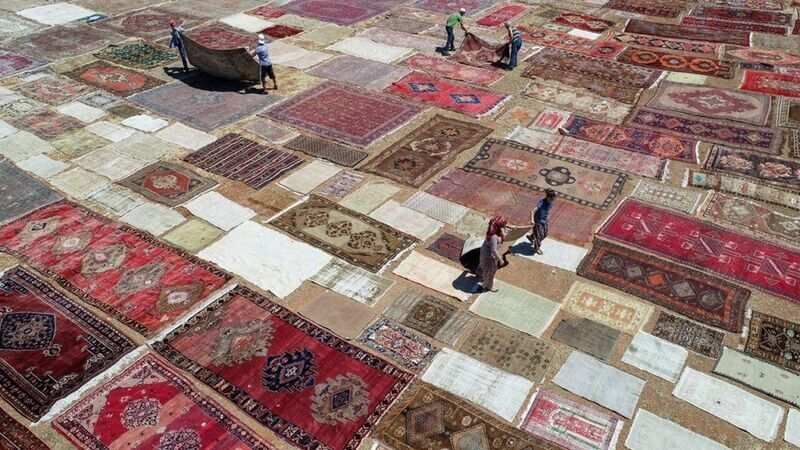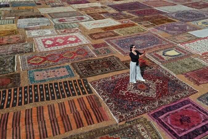 Türkiye’nin dört bir yanından toplanan el dokuması halılar, Antalya’da gökyüzü altında benzersiz bir renk cümbüşü oluşturuyor